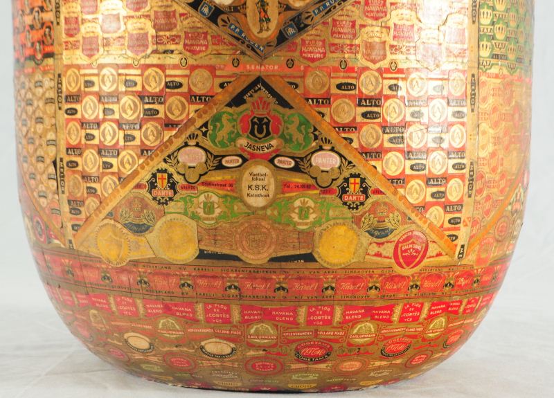Decorated with Hundreds of Cigar Labels in a Diamond Pattern.