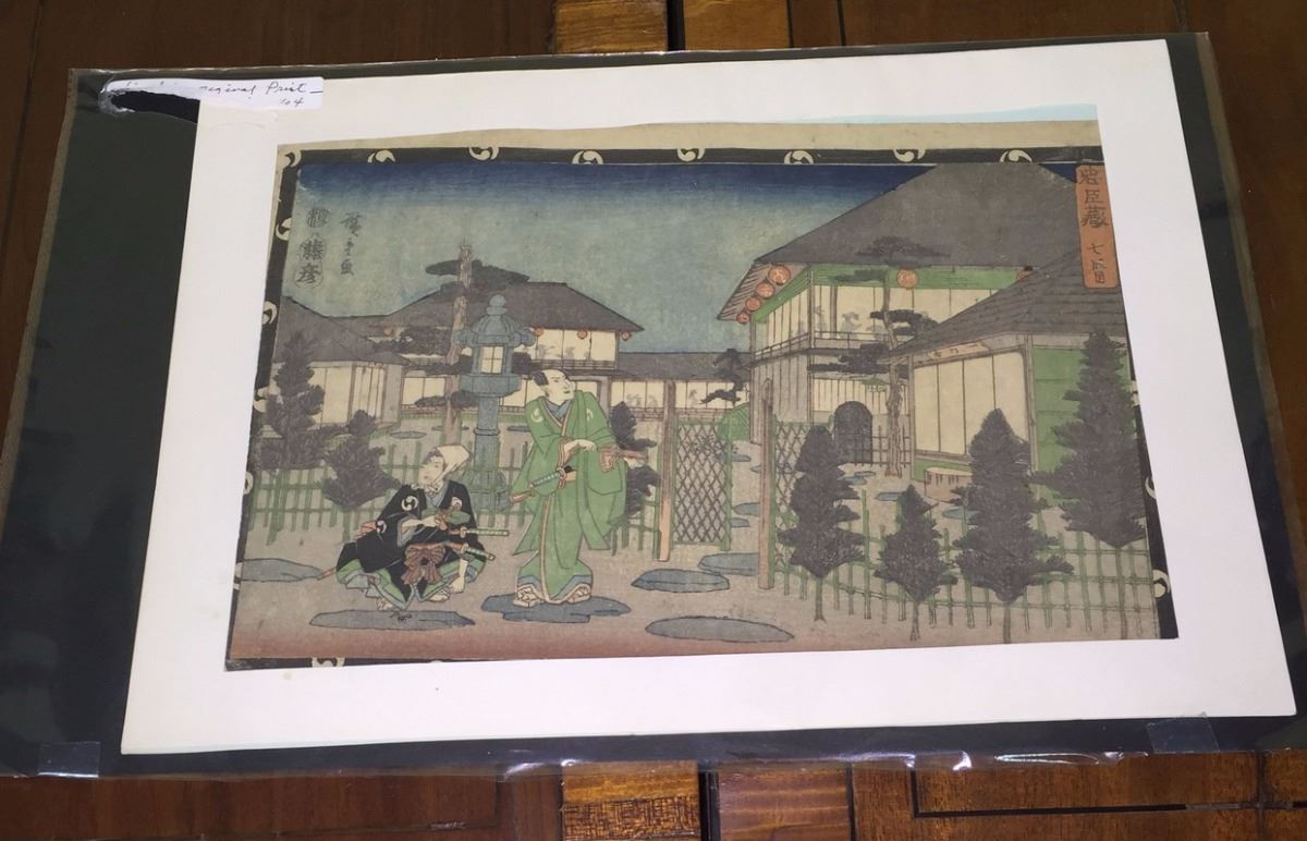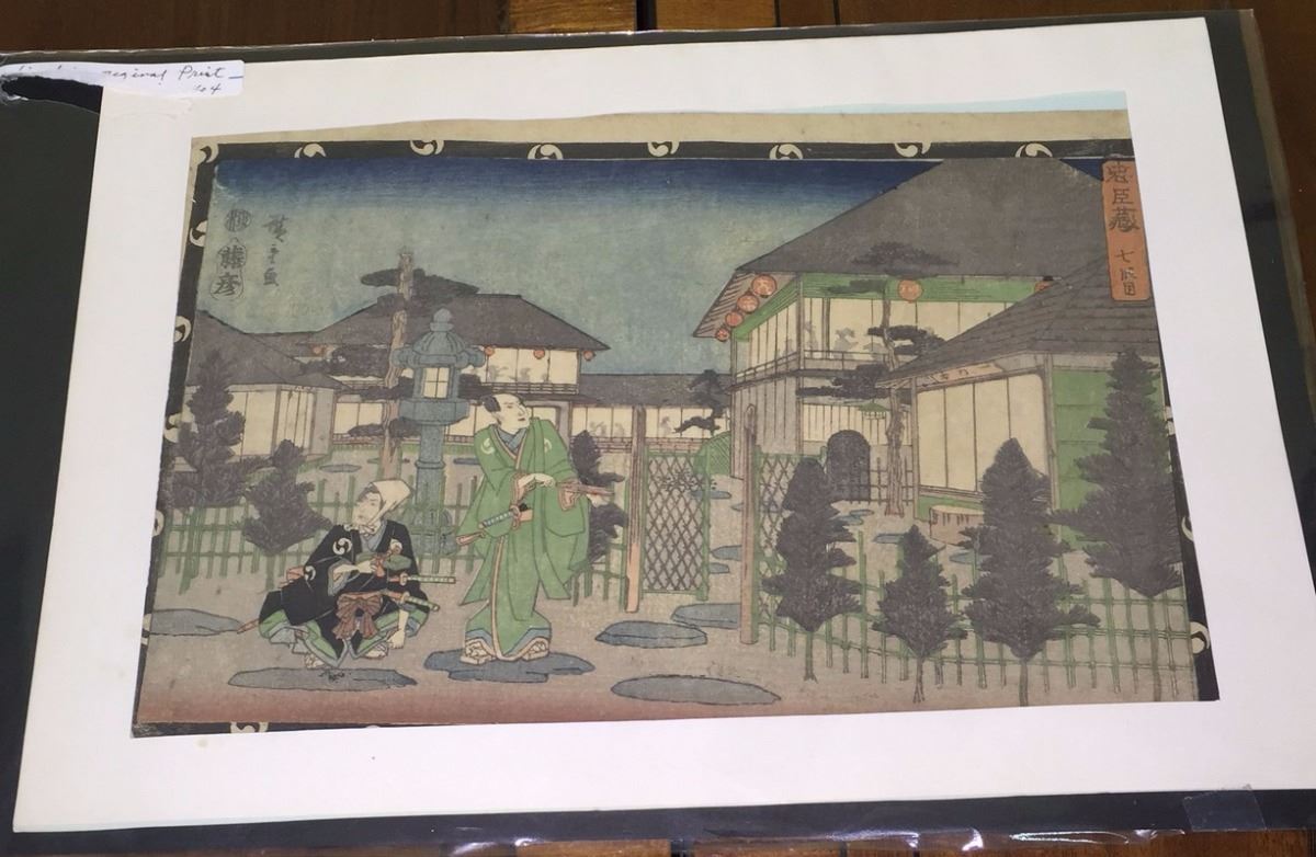 Antique Circa 1820 Japanese Wood Block Water Color Print by Hiroshige (Original)