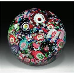 Antique Clichy scrambled millefiori paperweight, with whole and partial complex millefiori in pi...