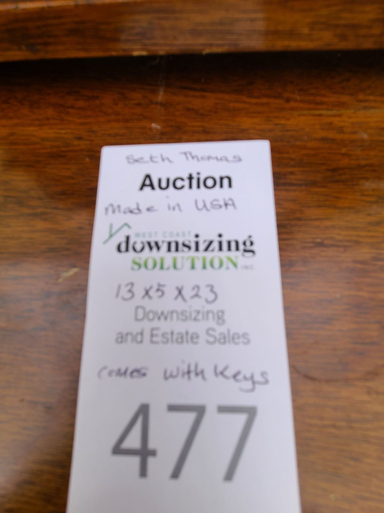 Made in USA, has keys 13x5x23. Pickup at 9am