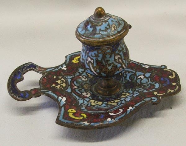 Antique Cloisonne' Inkwell, measures approx. 2.5'' x 5''. SHI $15.