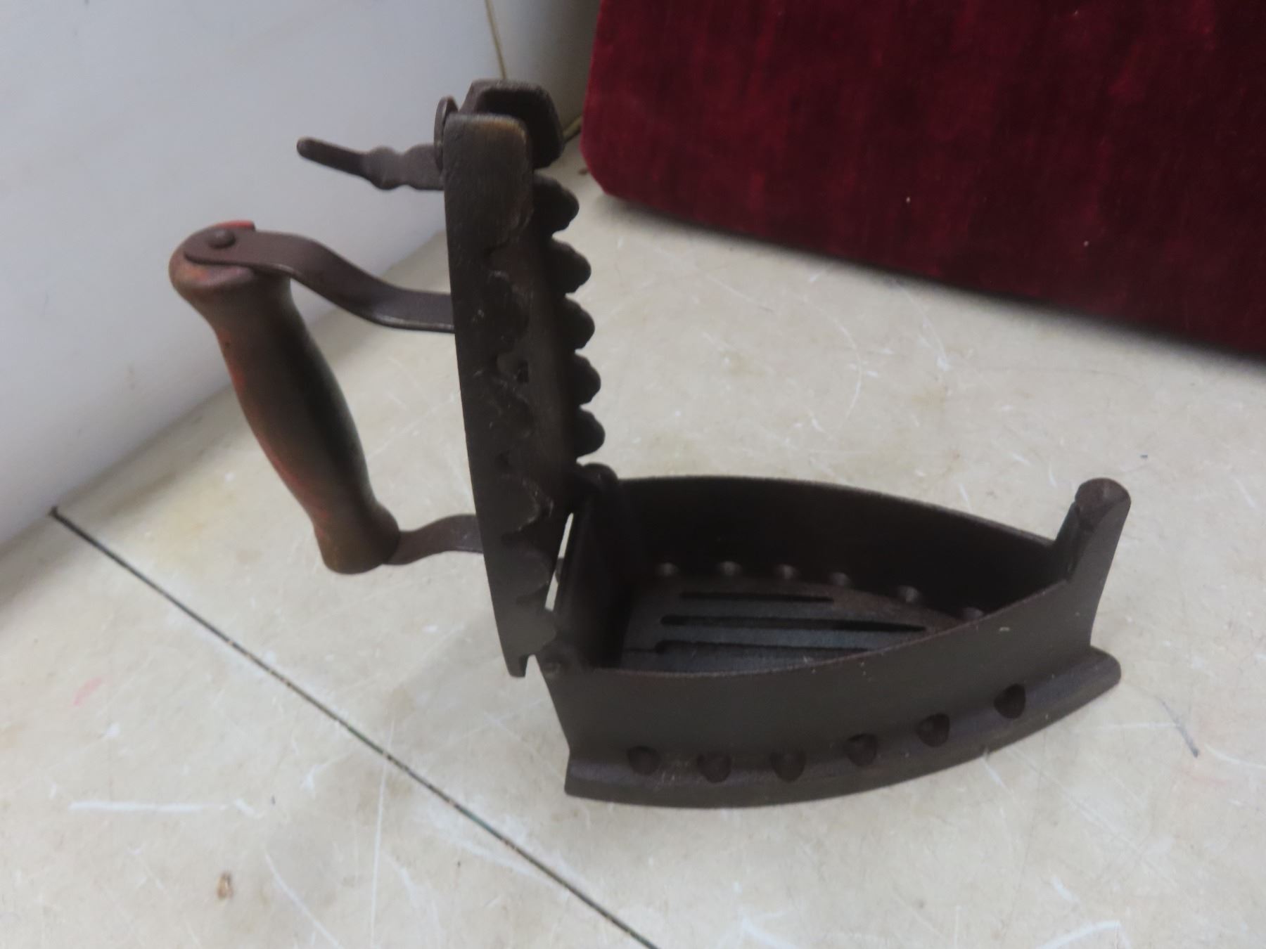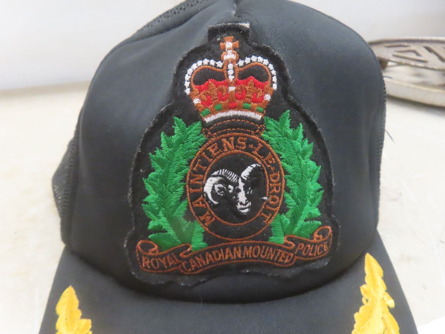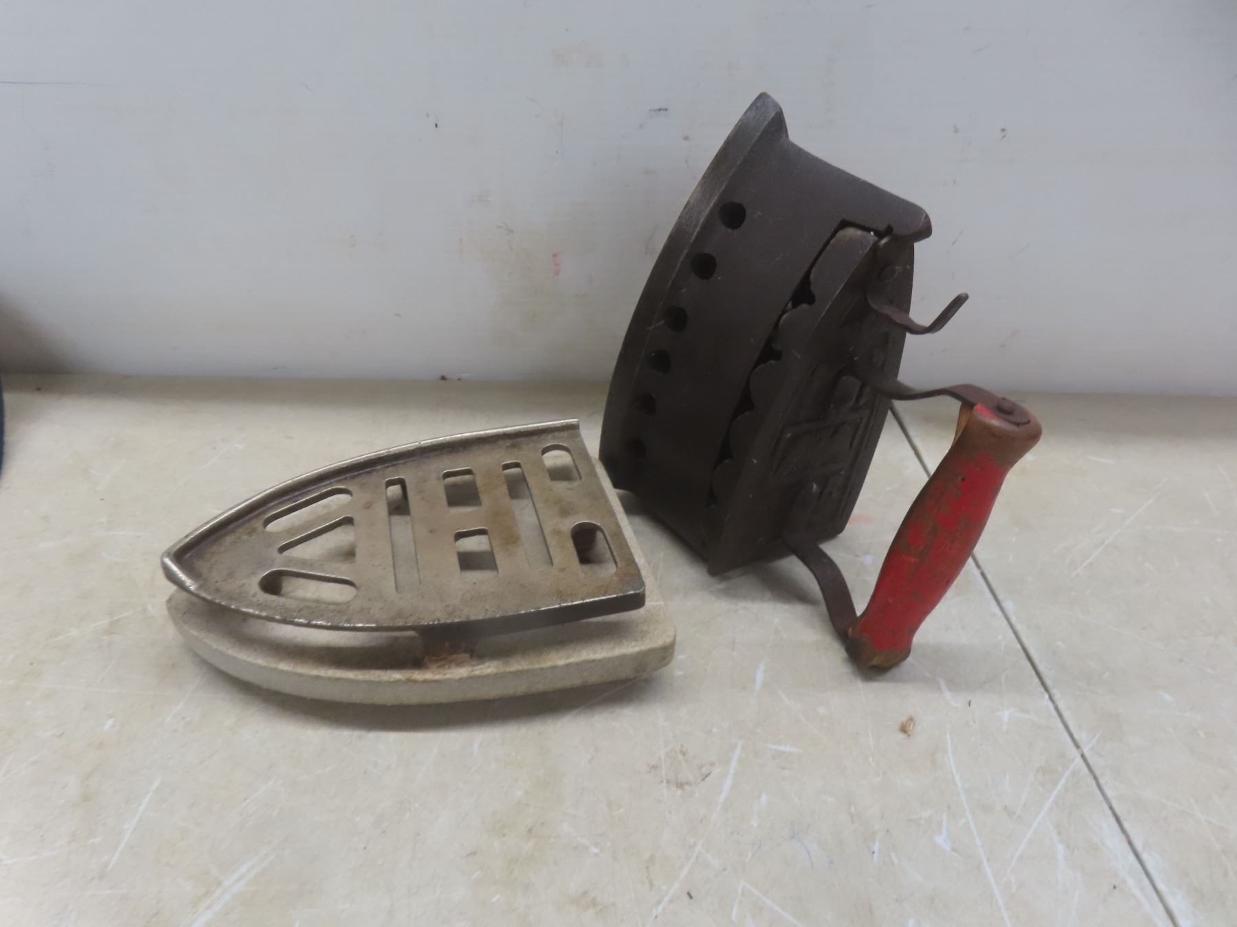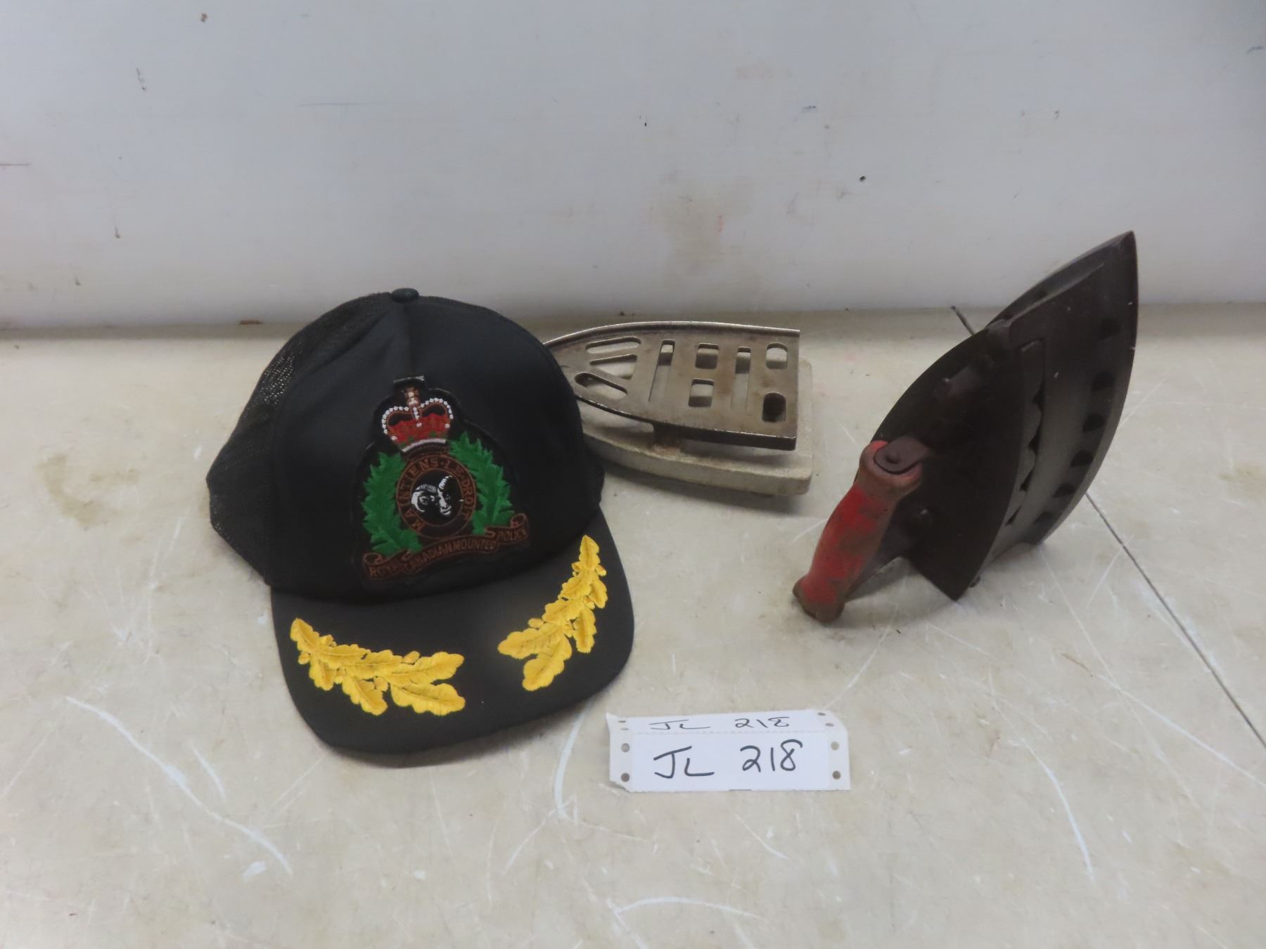 Antique Coal-Fueled Iron with Trivet and RCMP Goat Ball Cap