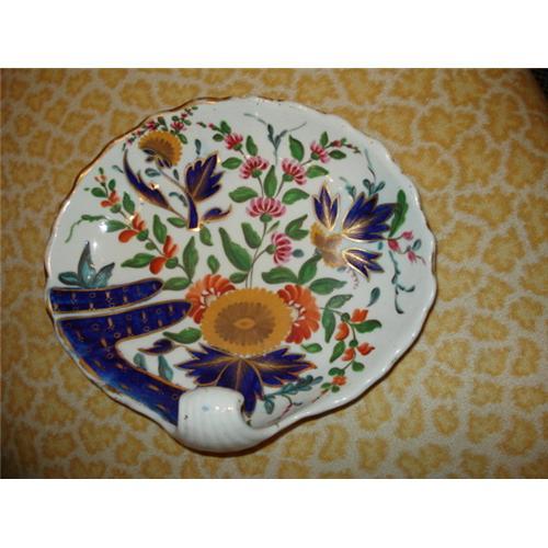 A Beautiful Antique Coalport Porcelain, of England, Footed Shell Dish, with Scalloped Rim and Arched Handle, A VERY RARE FORM. In Excellent Antique Condition. In the beautiful pattern known as "Thumb and Fingers" influenced by the Imari patters that were so wildly popular at the time. This item is in excellent condition and can be in today's entertaining needs. Please check my other listings for companion pieces.