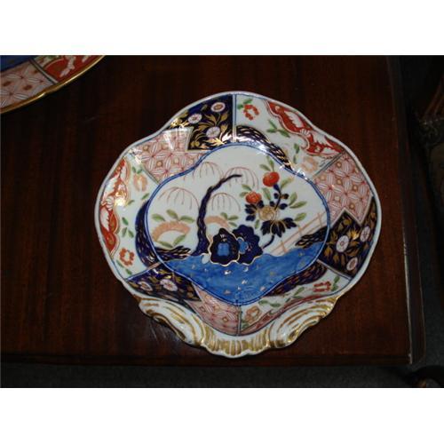 A Beautiful Shell Dish, Circa 1795 to 1810, From the Coalport Porcelain Factory of England, in the "Money Tree" Pattern. Bright Cobalt Blue on a pure white Soft Paste Porcelain ground is complimented by other Vivid Enameled Colors and accented by Fine Gilt Decoration. This Popular pattern is a direct interpretation of the Imari patterns imported from Japan that were so Wildly popular during Regency England. Having been considered a "Status Symbol" across Europe and in America, Examples of this pattern can be found at Buckingham Palace, Windsor, The Metropolitan Museum of Art, and the Nelson Rockefeller Collection. This Rare and Impressive Shaped Shell Dish is in Excellent Condition, and is A Very Difficult item to locate in this pattern!