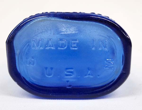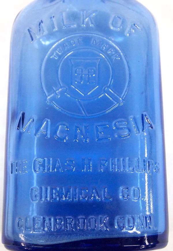 Antique Cobalt Blue Glass Milk of Magnesia Bottle, measures 2'' x 3.5'' x 7''