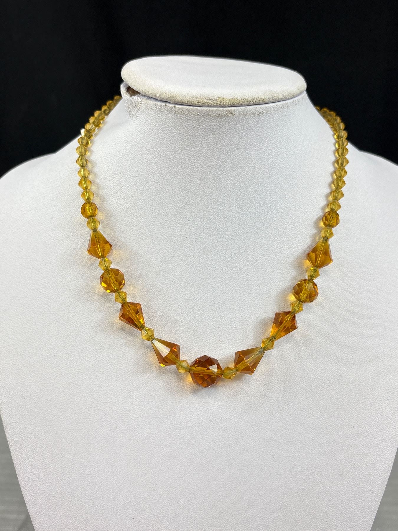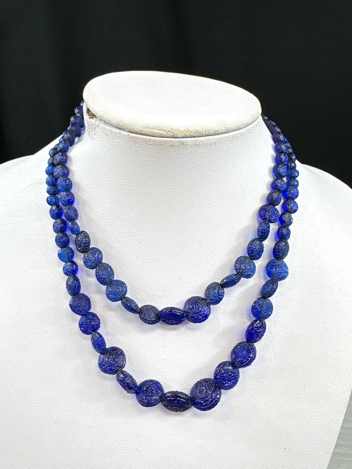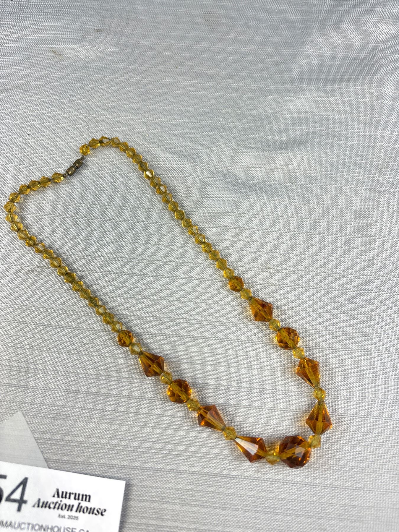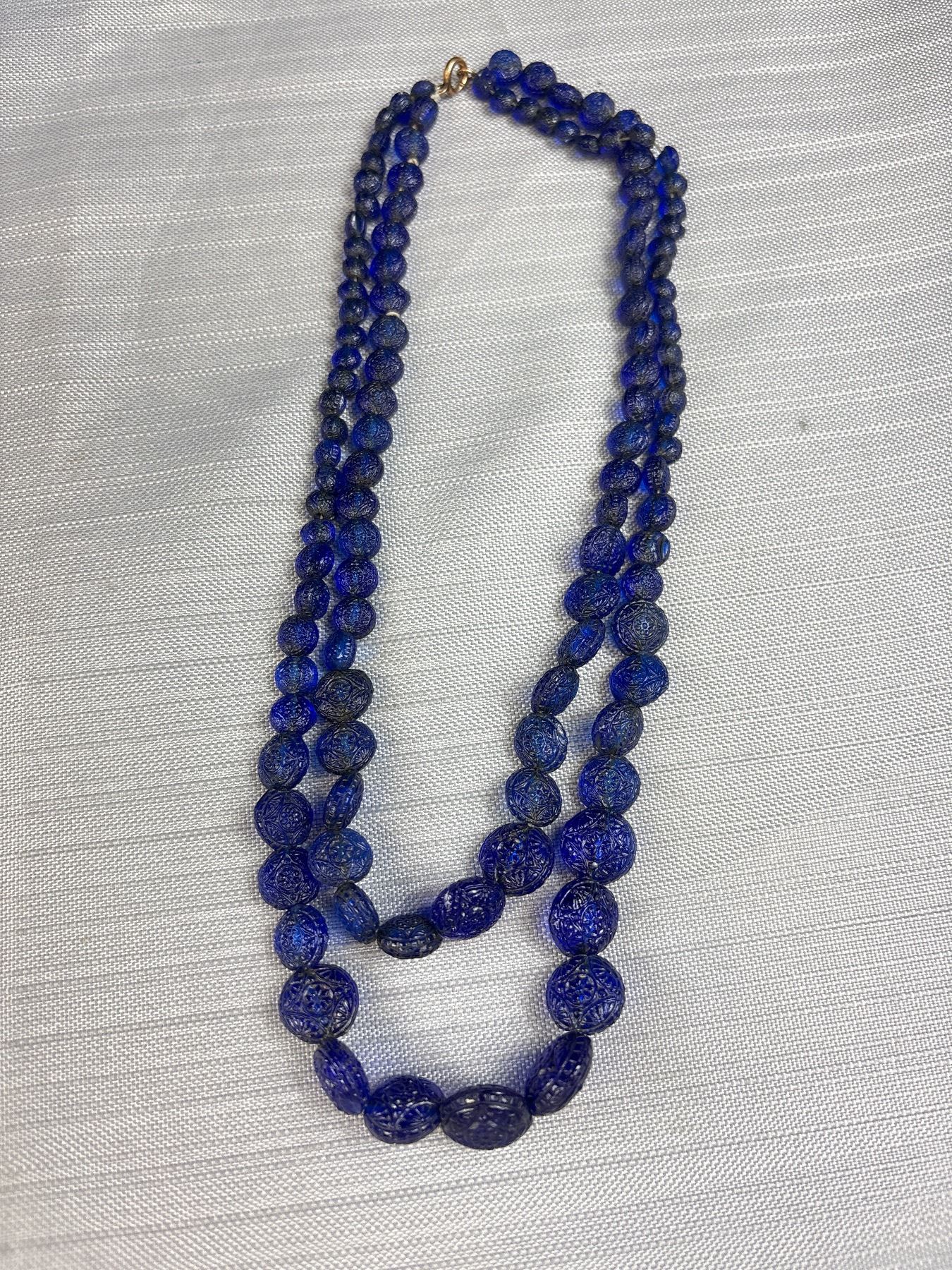 Antique Cobalt Blue Pattern Glass Necklace + Gold Glass Necklace