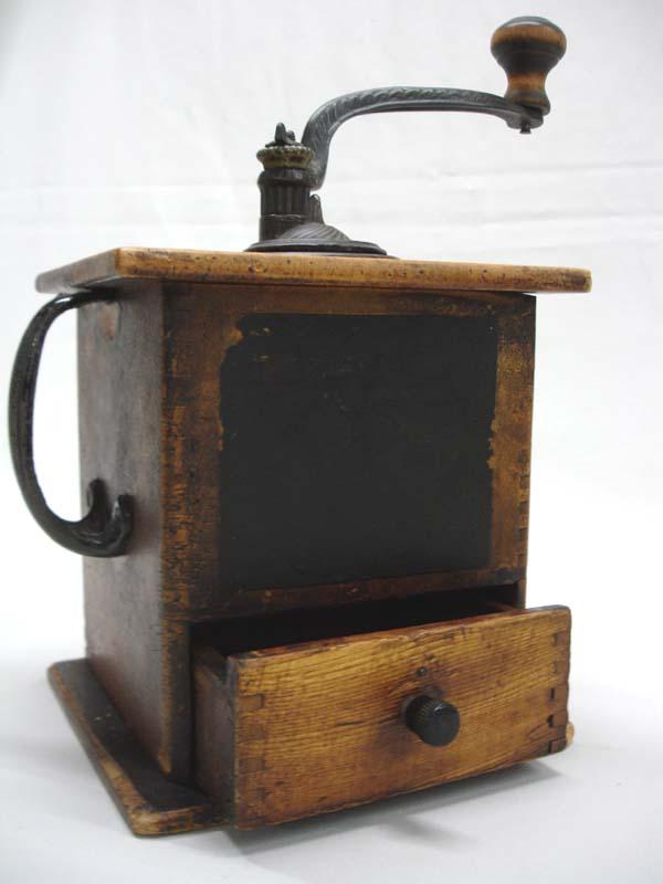 Antique Coffee Grinder with Side Handle. Measures 12''H (including crank handle) x 8'' wide. Buyers Pay Actual Shipping and Handling Charges(see terms and conditions for more information).