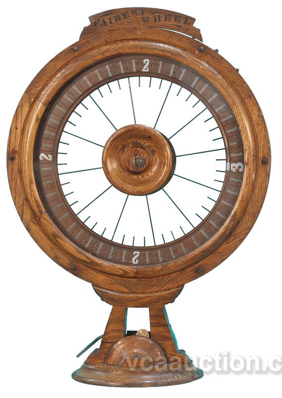 Antique Coin-Op "Fairest Wheel" Trade Stimulator Skill Game Wheel Machine c1897 - 1915 by Decatur Fairest Wheel Works Decatur, ILL.
