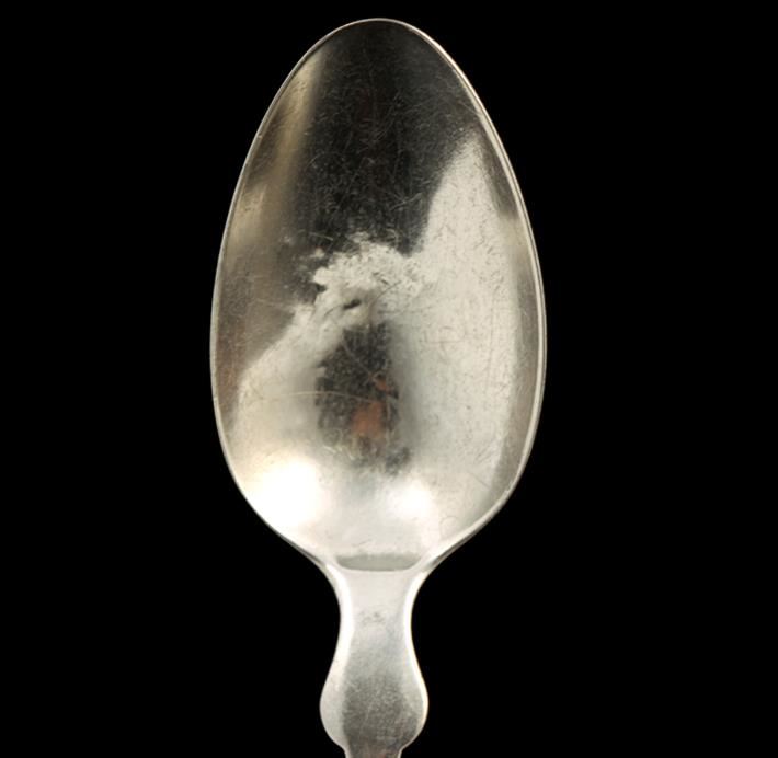 Set of (10) silver spoons crafted by William Wallace Willard of Cazenovia, New York. There is a beautiful period script monogram on the front handle "SWR". It dates from circa 1850 and is in very good condition with typical slight surface scratches and a s amll dings in bowls and on the handles. These pieces measure 6" long.