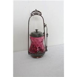 2 CRANBERRY GLASS CRUETS S SALT & PEPPER FROM CRUET SET