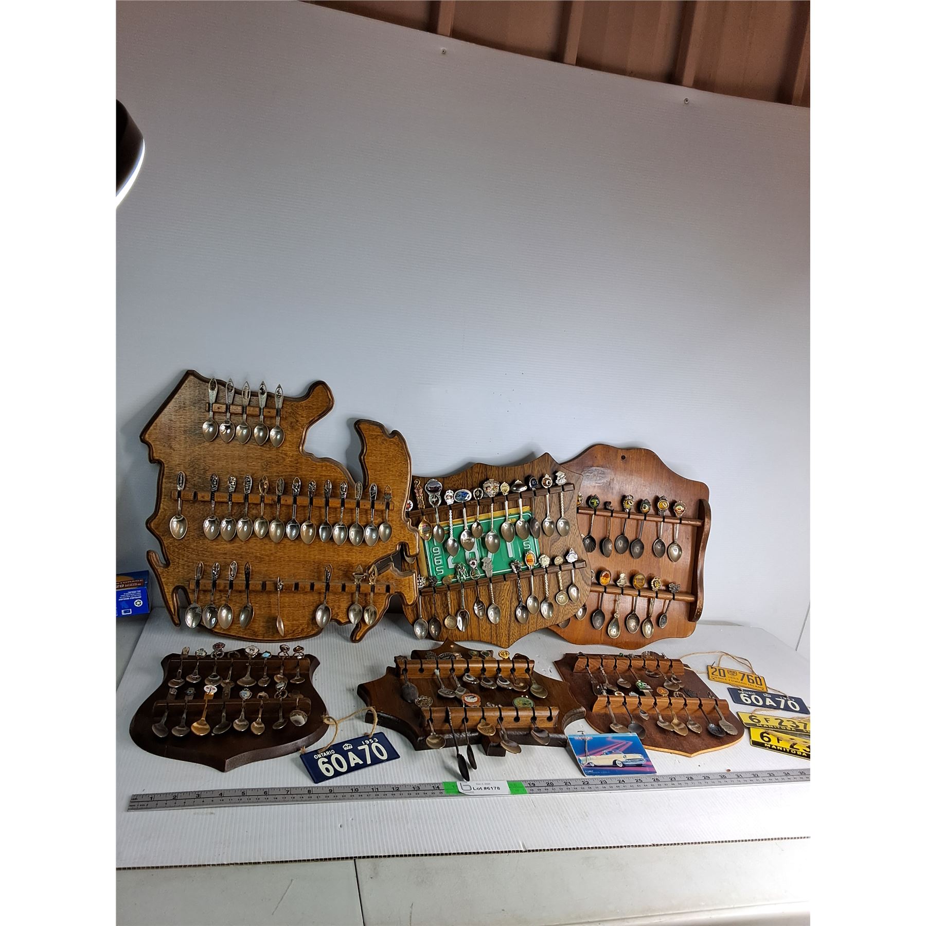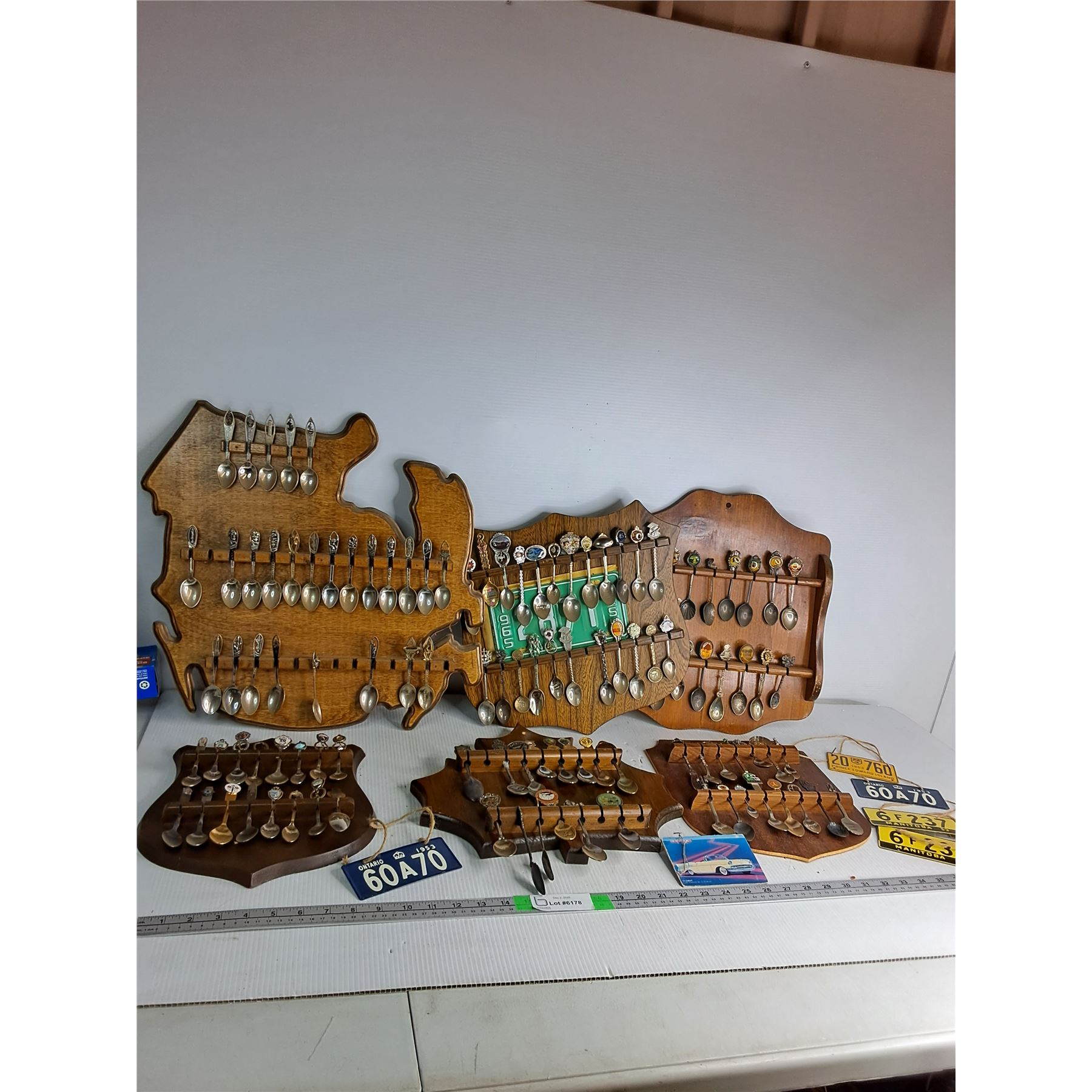 Antique Collector Spoons on Wall Plaques (6) Up to 18 x18 - cannot ship