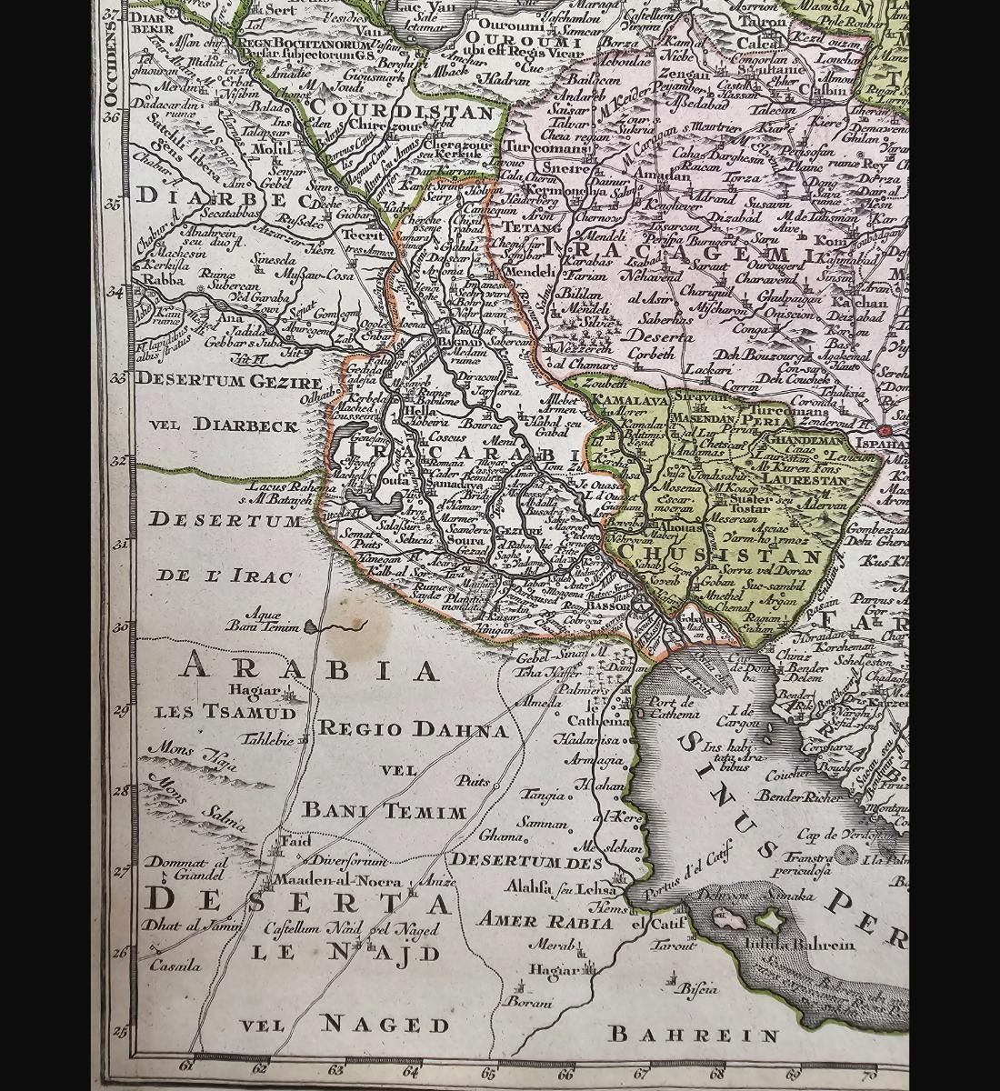 Antique Colored Map Of The Middle East. Measure 22 3/4" X 27". Provenance: One Person Private Estate Central Florida.