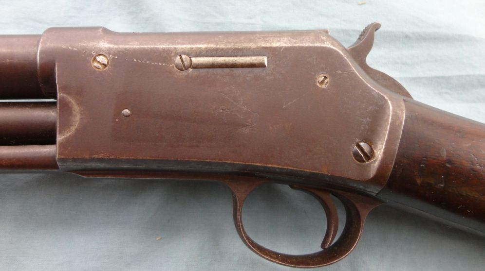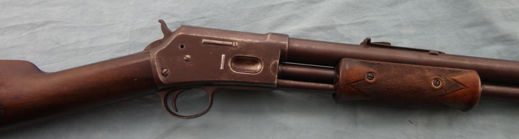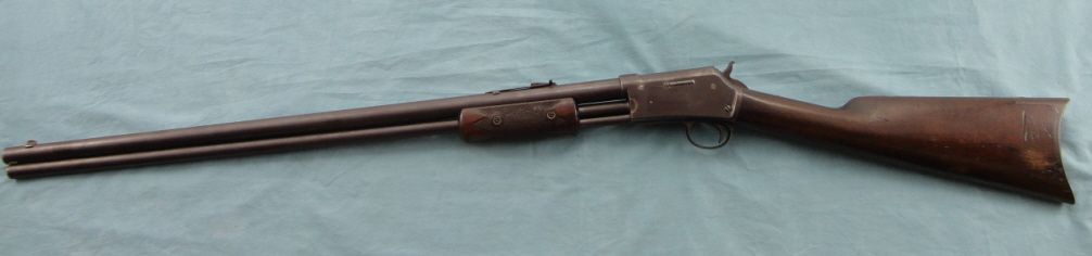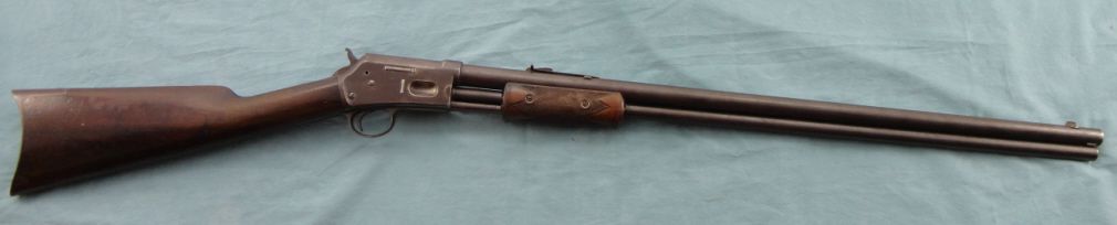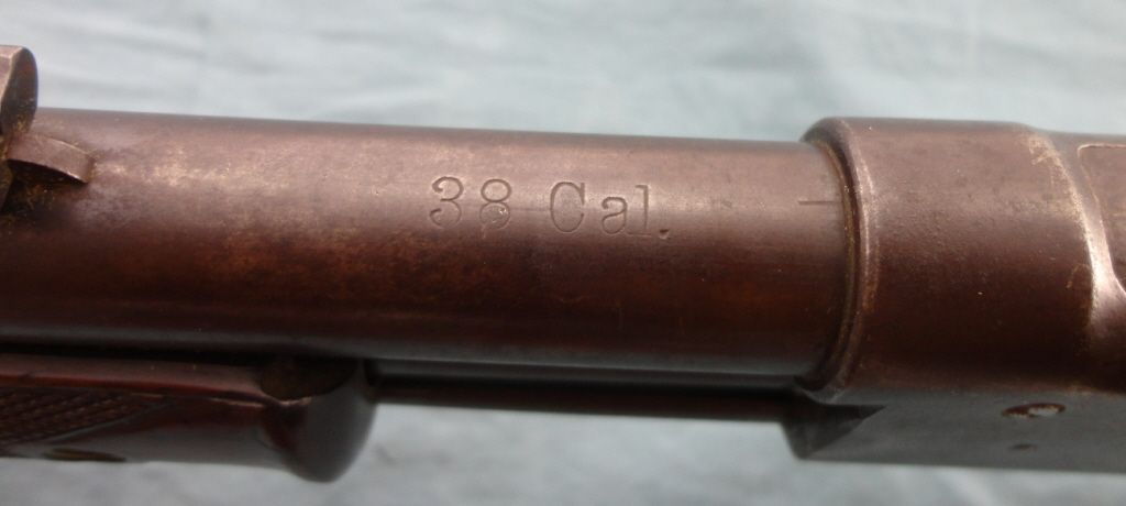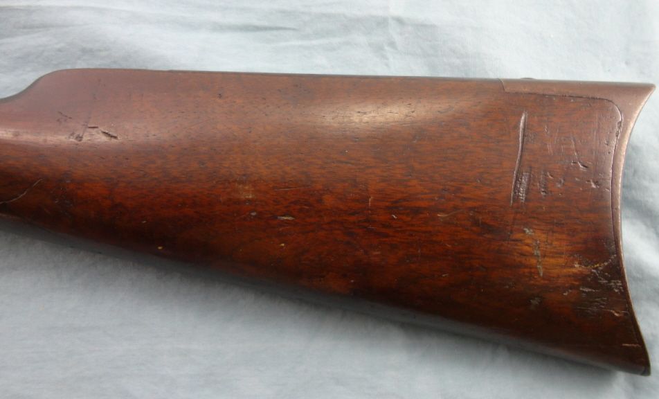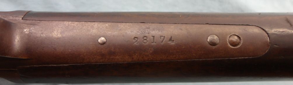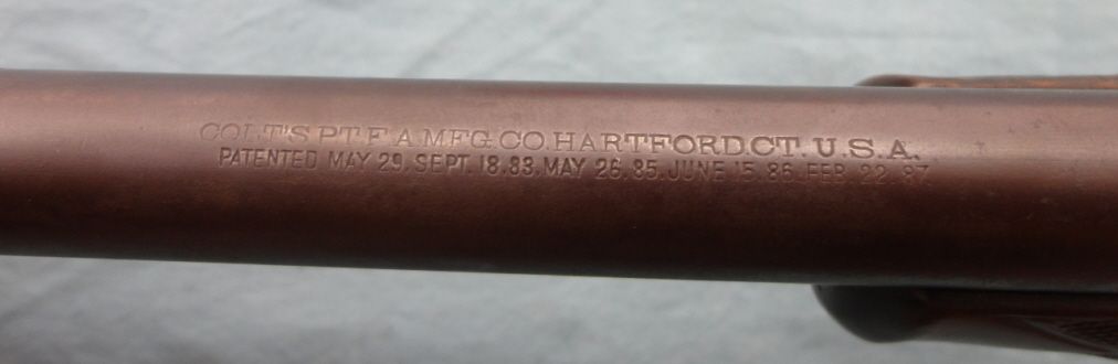 #28174; Antique. 32 cal. 26" round bbl. w/good bore. Metal has even brown patina w/visible Rampat Colt on left side of frame & full bbl. markings. Wood is solid w/common dents & scratches. Mechanically gun functions very good. A nice overall example of Colt's competition to Winchester Rifles.