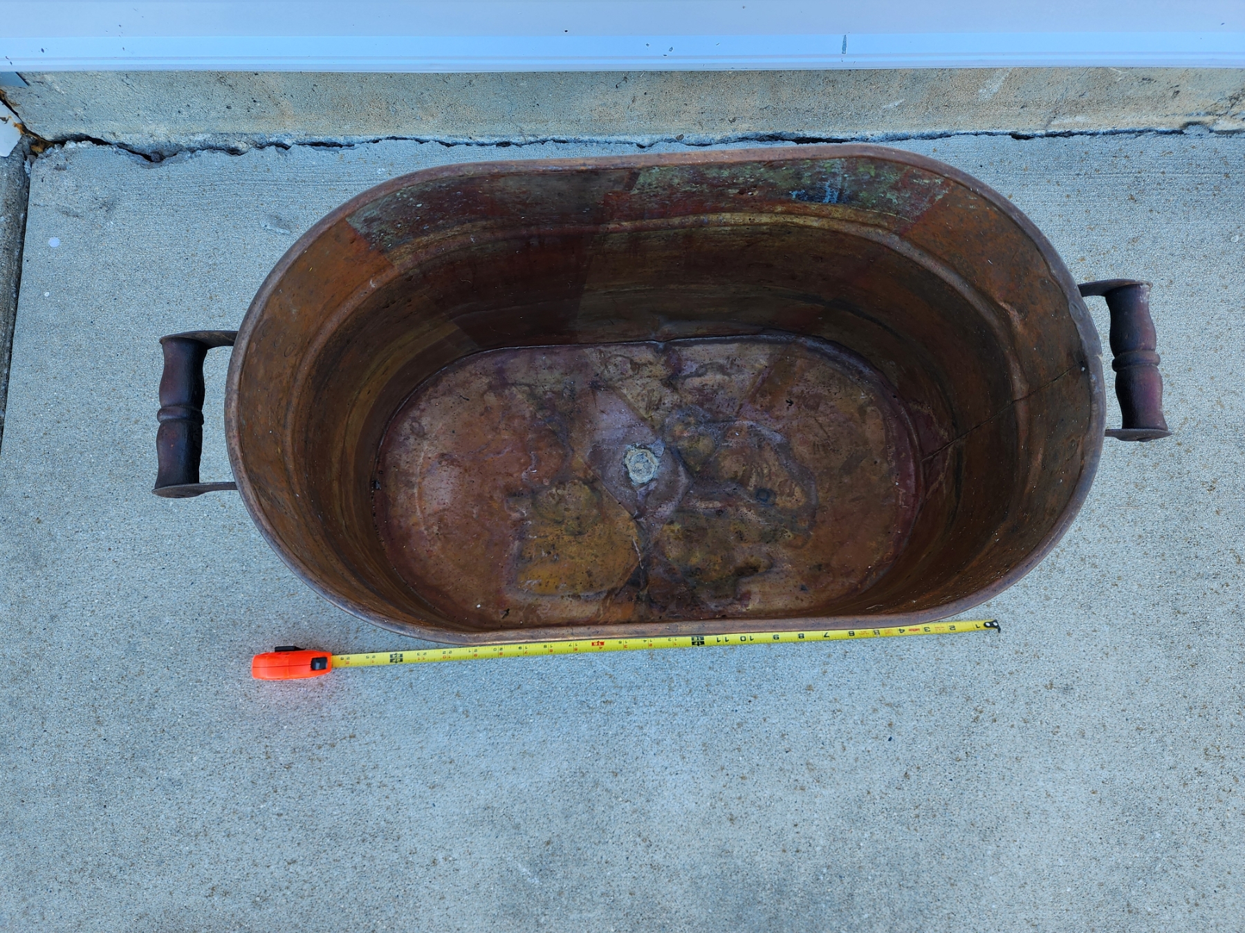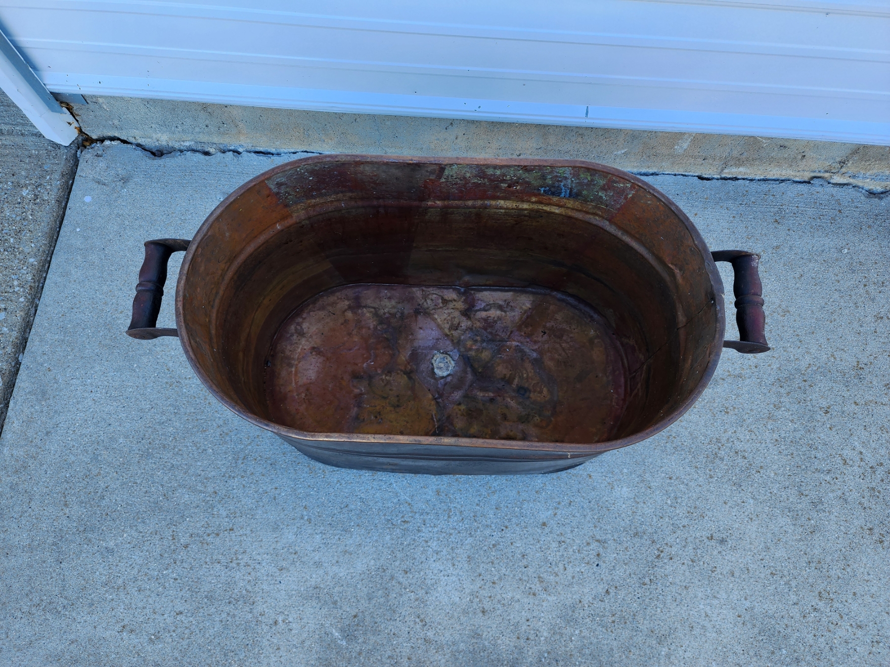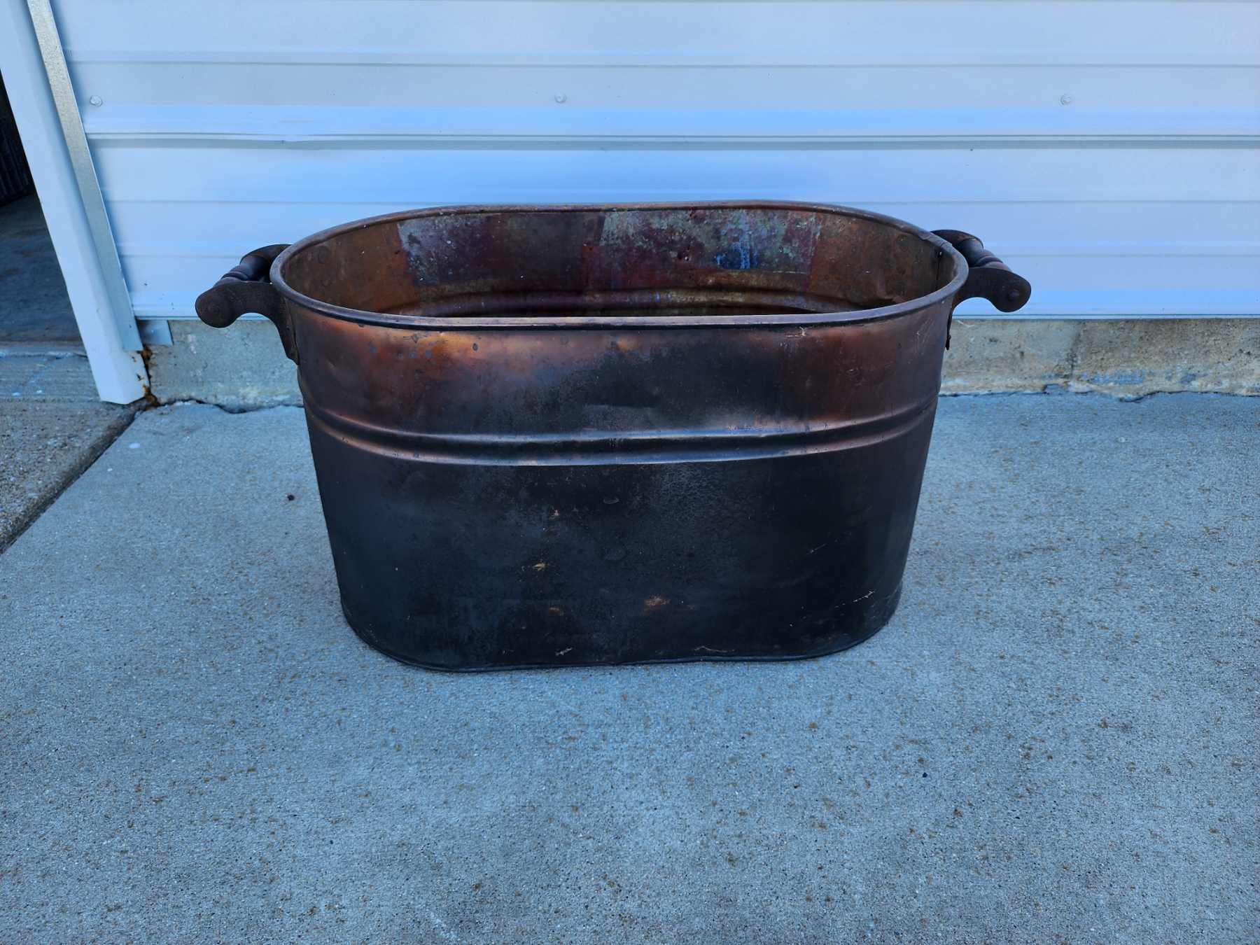 Antique Copper Wash Tub with Wooden Handles