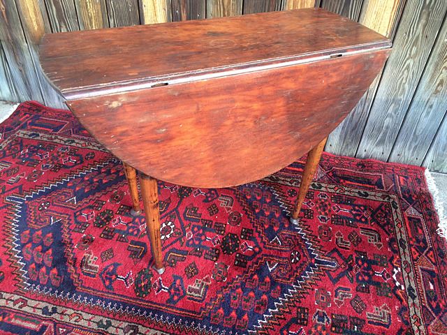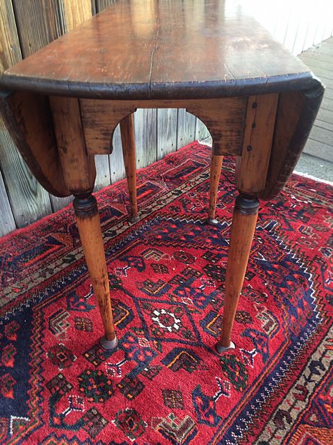 Antique Country Queen Anne Drop Leaf Table, early to mid 1700s in nice condition, minor wear on feet from normal use, very uncommon size, nice table. Measures approx. 36" long x 17" tall x 15" wide with 12" wide leaves.
