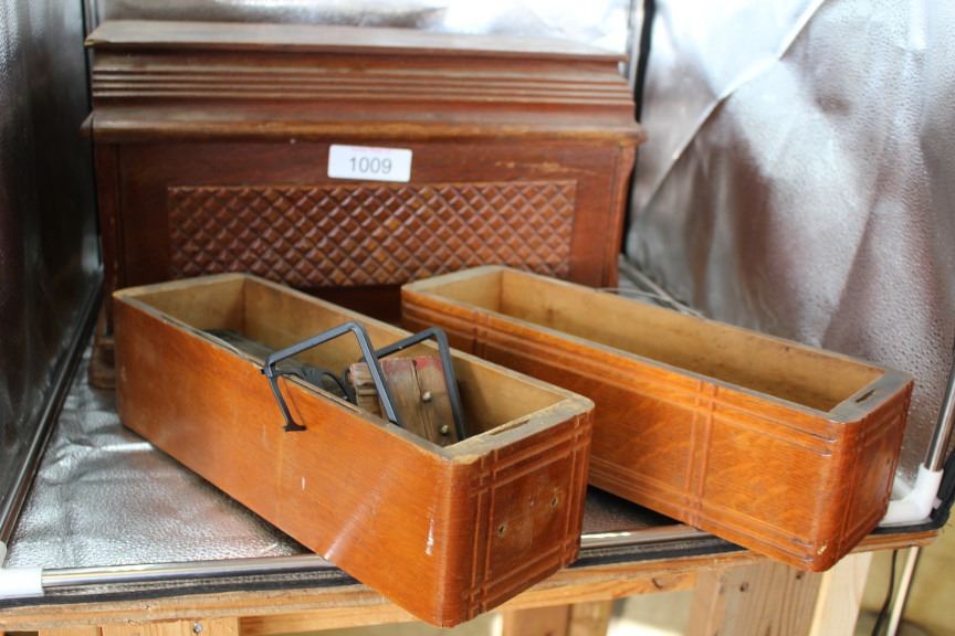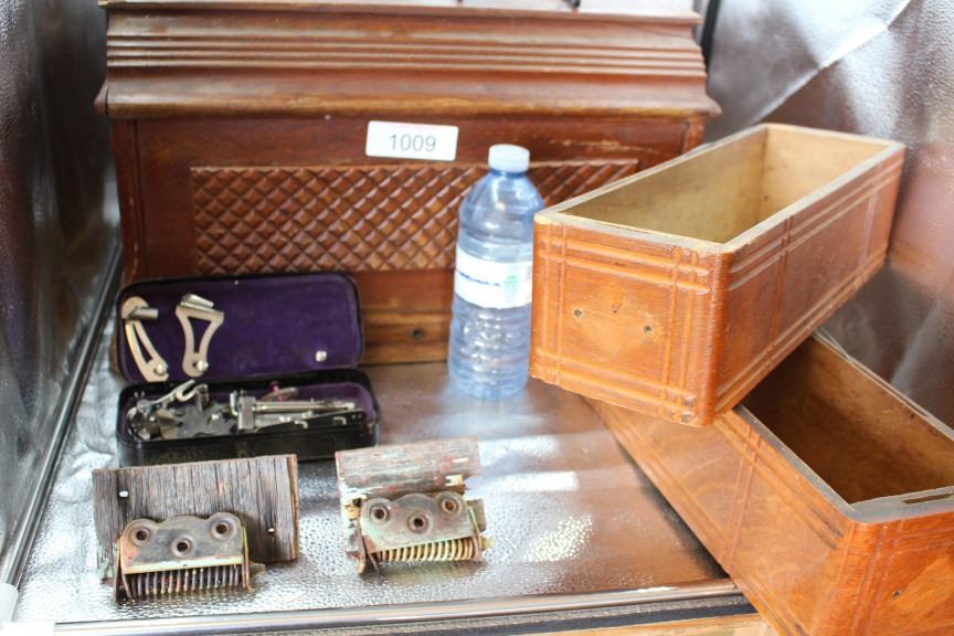 a Antique Sewing Machine Cubboard, Sewing Machine Accesories. Coatracks, Wooden Frame