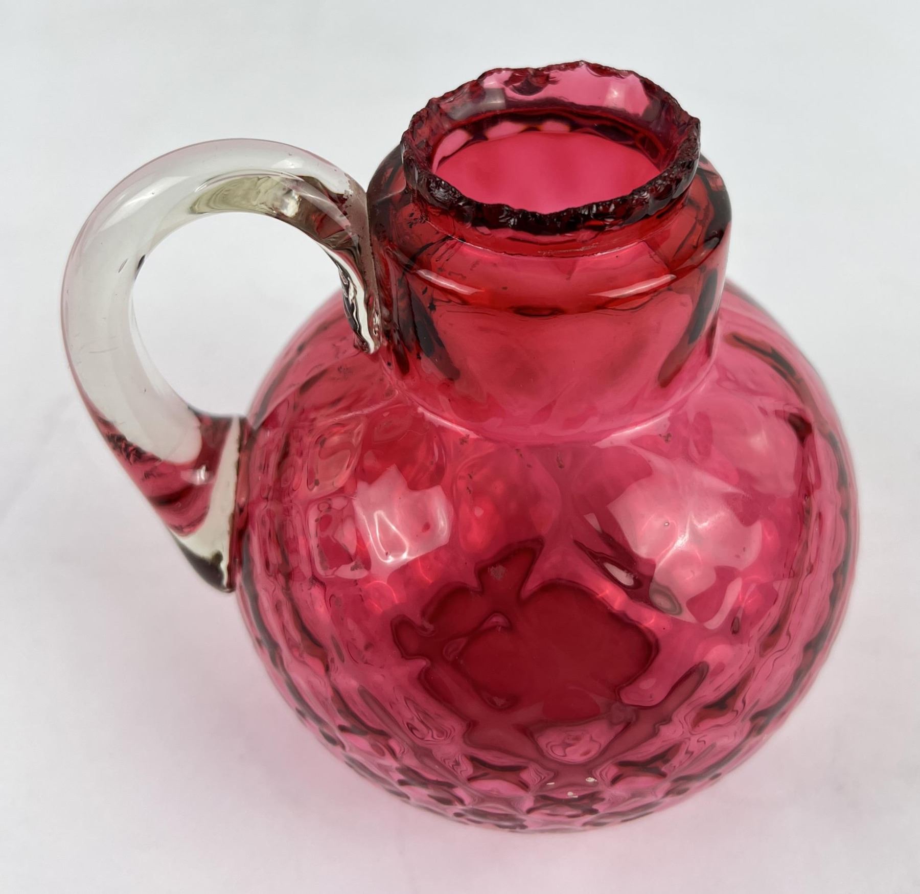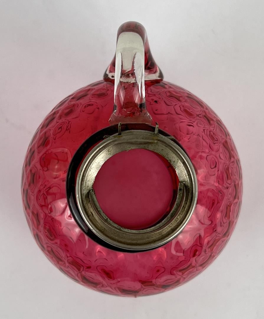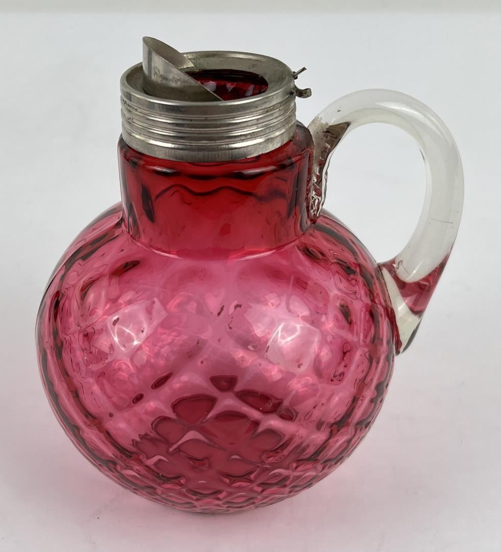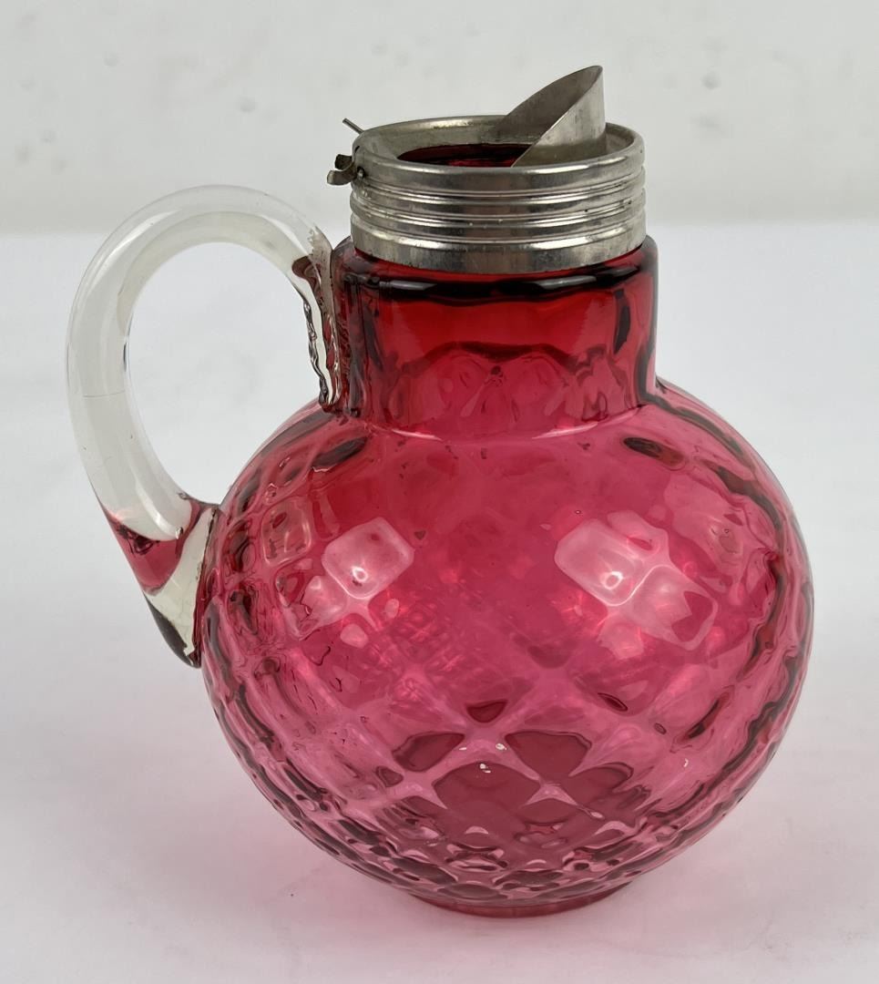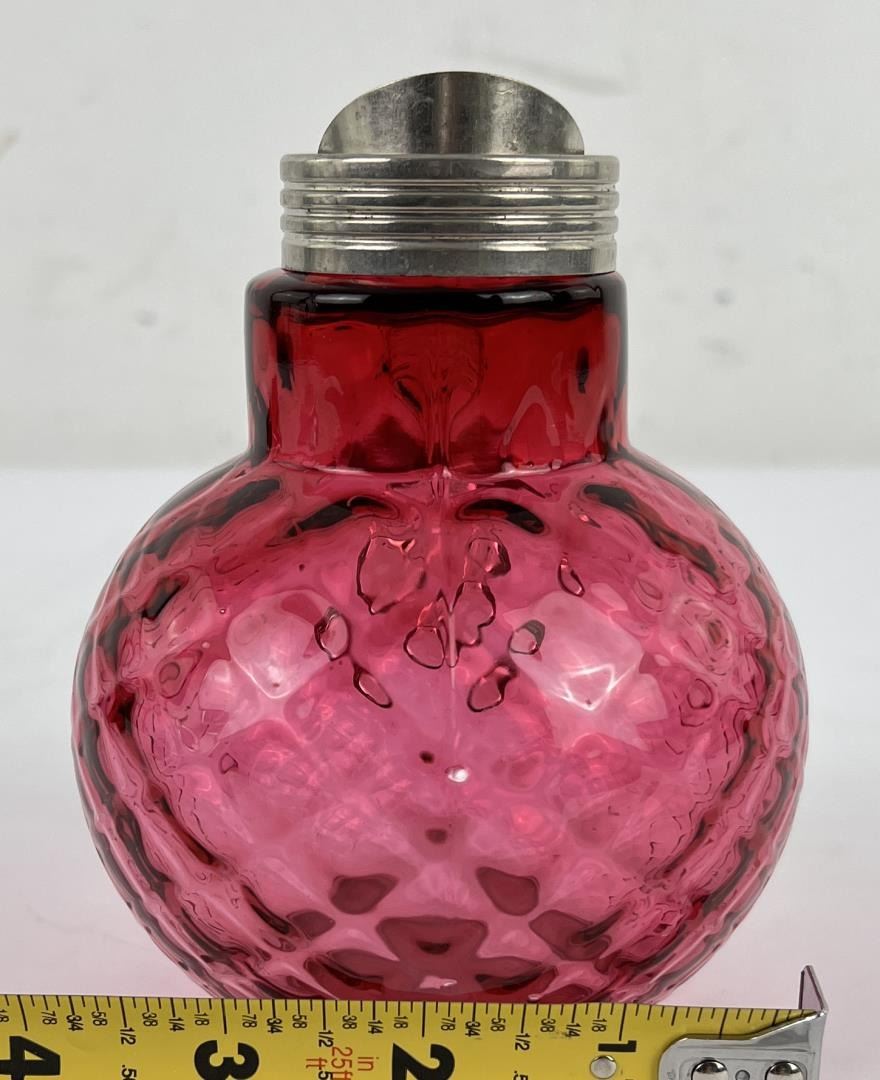 Very nice old piece of glass. The gasket on the mouth has dried out from age and is no longer present. Meaning the metal collar will not stay on the base. 5 1/4" tall.