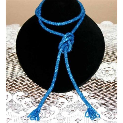 Gorgeous Art Deco Era Crochet Beaded Lariat Flapper Necklace using brilliant deep blue glass seed beads, hand Crochet measuring 44 inches long with a 1 inch long looped tassel. A fabulous Necklace worn in many different styles; also makes a beautiful belt.
