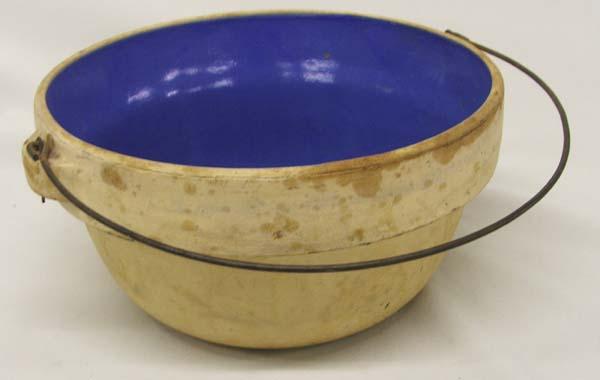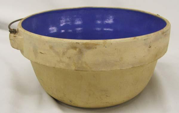 Antique Crock Bowl With Handle. Measures approx. (without handle) 4 1/4''H x 10'' diameter. Buyers Pay Actual Shipping and Handling Charges(see terms and conditions for more information).