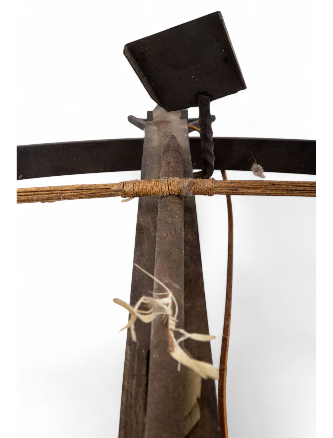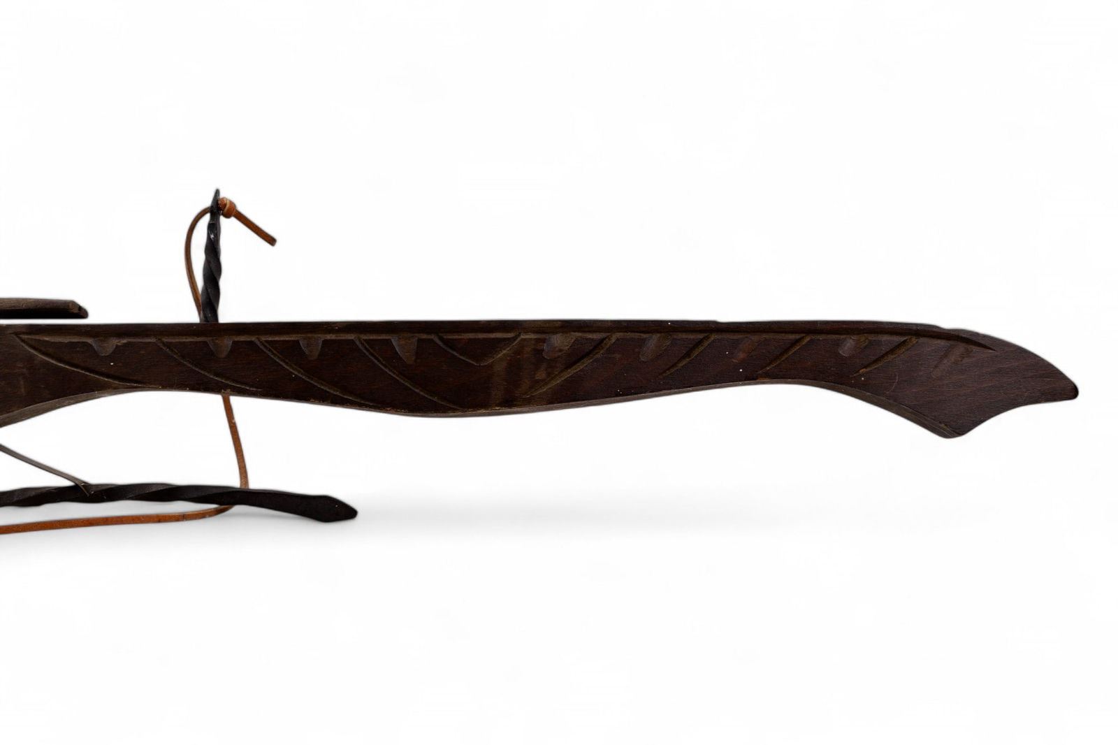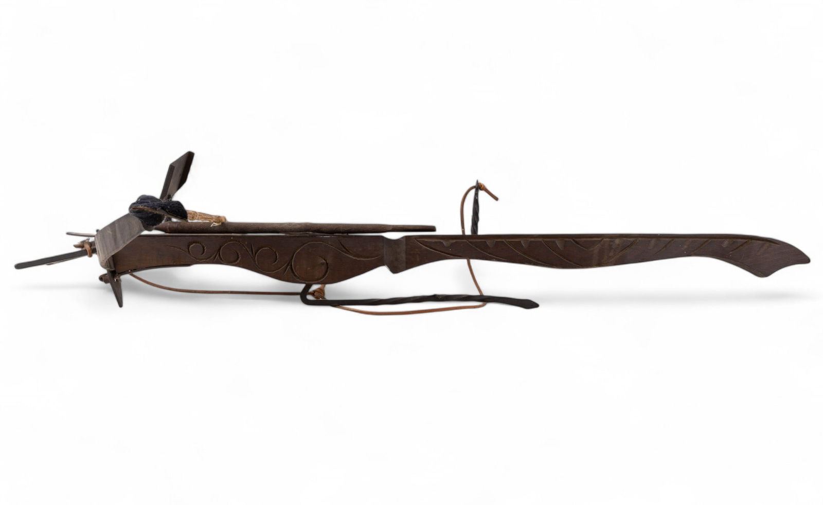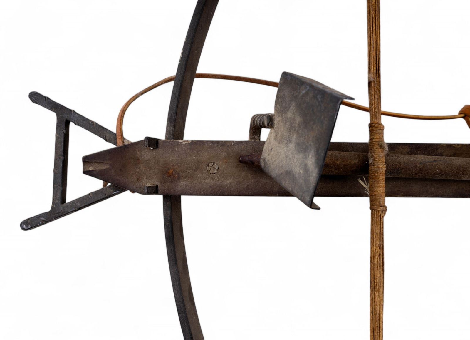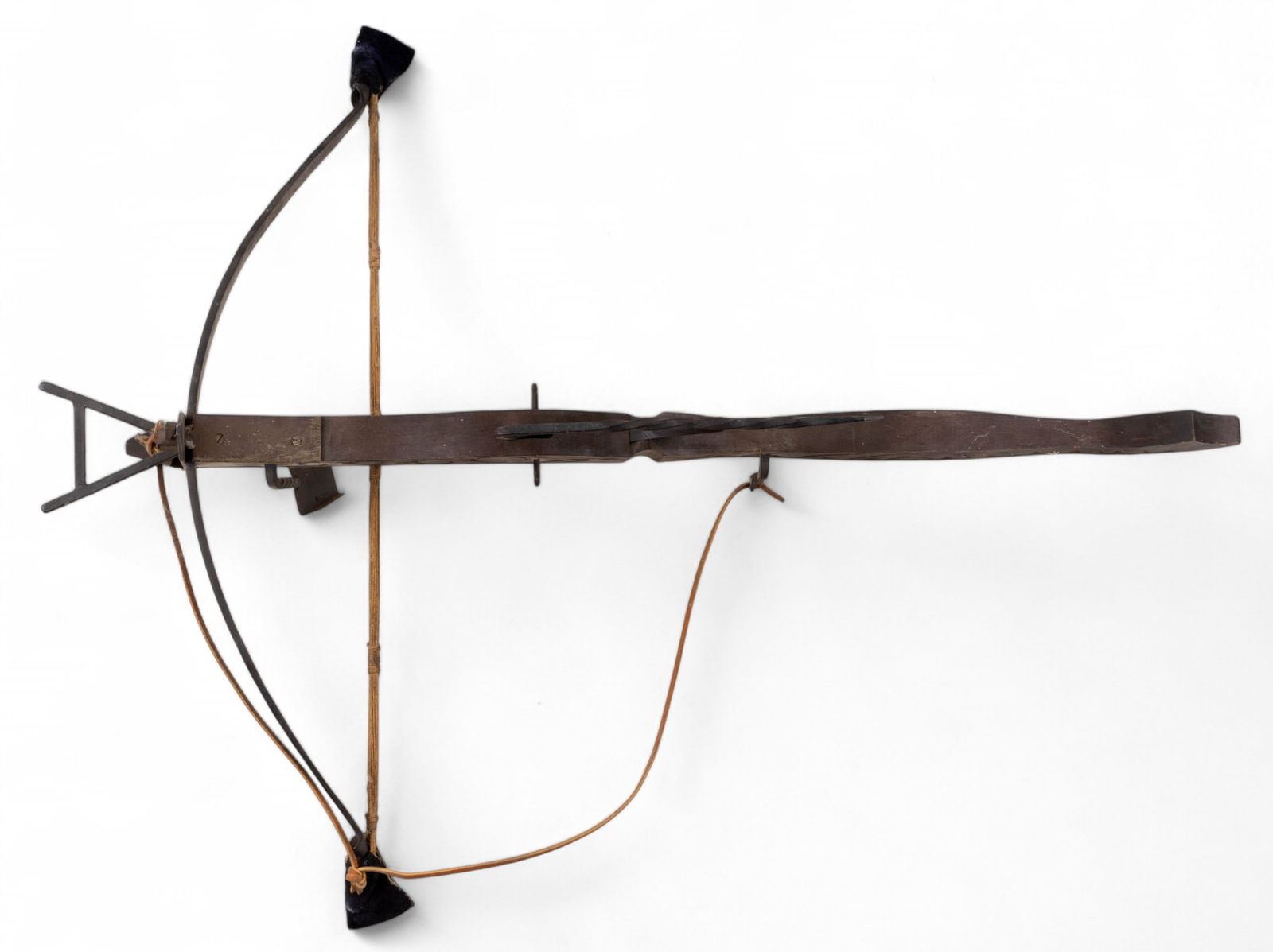 Continental antique crossbow, passably functional w/ early bolt. Item measures approx. 31.5" long & 24" wide.