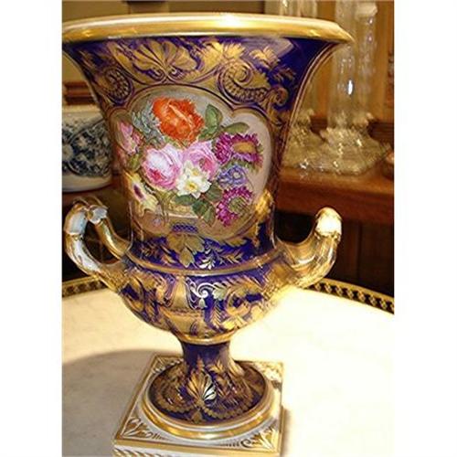 This Excellent Exquisitely Painted Vase of Campana Form, by the Derby Factory of England, Circa 1810 to 1815, Features an arangement of flowers in the manner in the manner of William Pegg, based on the Vivid color palate, with some of the flowers looking quite disheveled in their deportment, but with obvious intention,since every detail is finely depicted, down th the viens in the leaves, a quality level achieved by very few painters. The basket is placed on a Marble Slab, a common device in Early Derby painted Botanicals. The body of the Vase is in the richest shade of Cobalt Blue, with fine Regency style gilt work of applied, layered and etched gold. A very good and neat Early Mark of the Crown and the crossed battons. In Excellent condition. And offered at a most reasonable price!