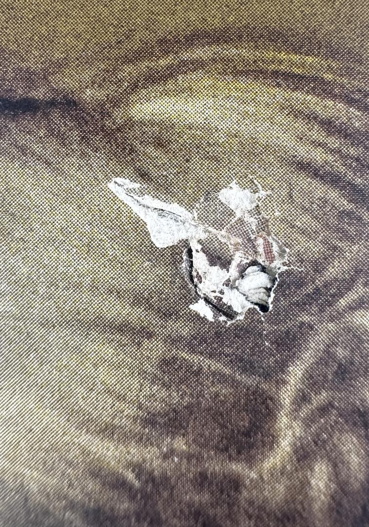 10 3/4" by 13 5/8" framed. One spot of damage.