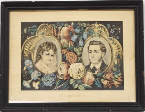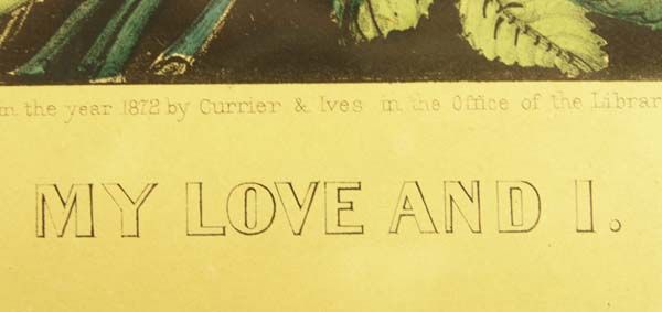 Antique Currier & Ives ''My Love and I'' Framed Print, measures 8.5'' x 12'', bottom of print reads ''Published by Currier & Ives Entered according to act of Congress in the year 1872 by Currier & Ives in the Office of the Librarian of Congress at Washin