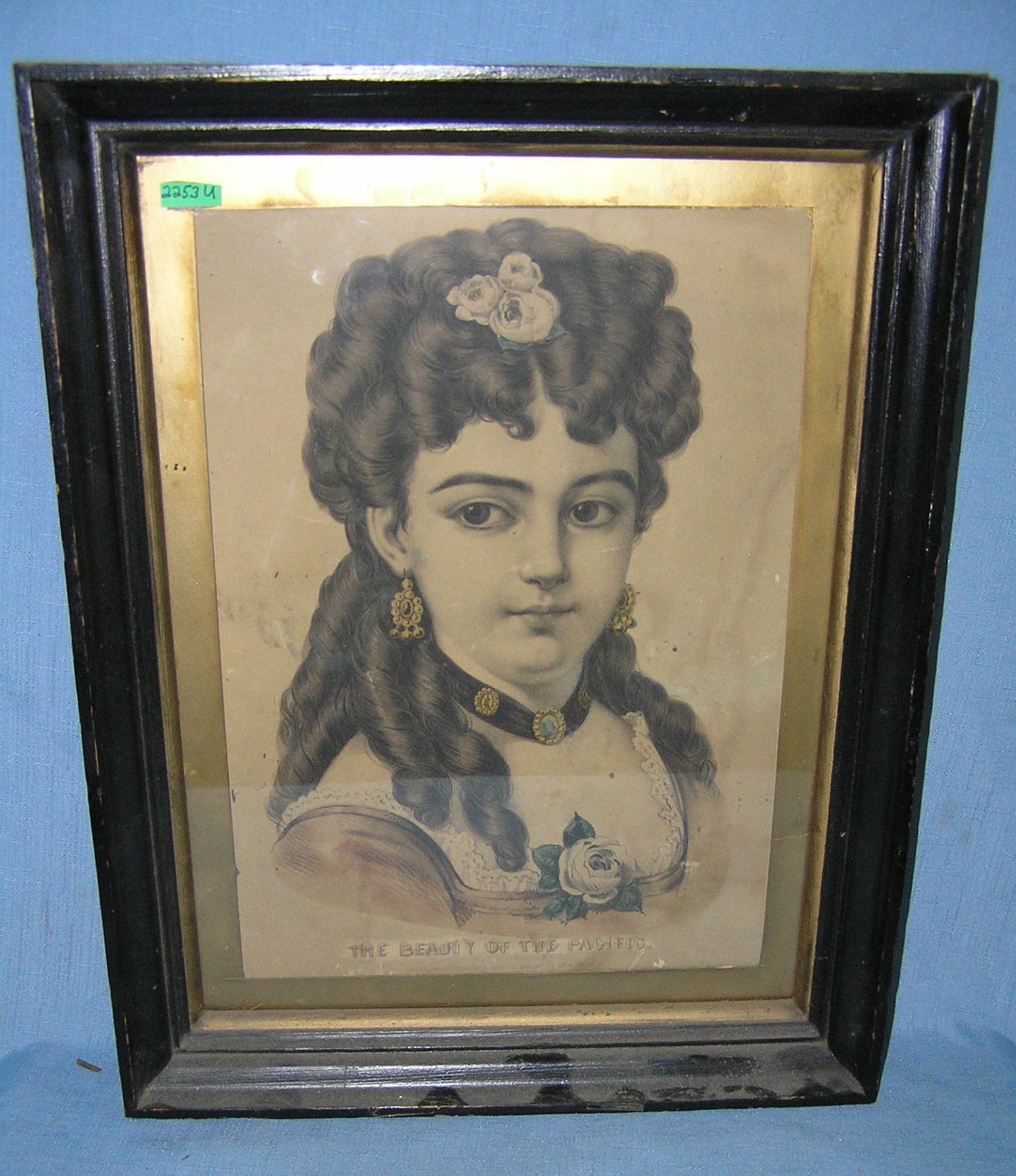 Antique Currier and Ives hand colored print titled The Beauty of the Pacific circa 1860s est. value $400.00-$600.00
