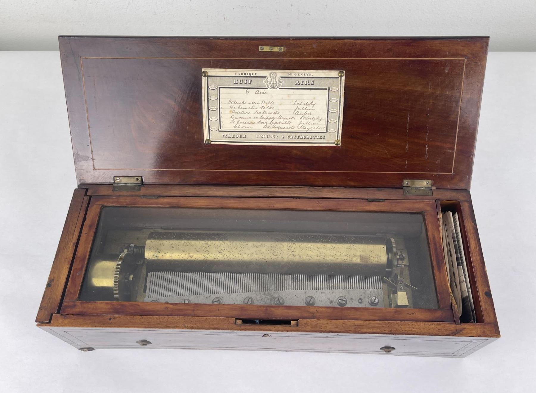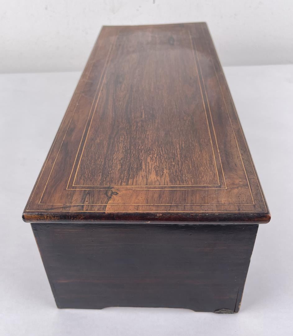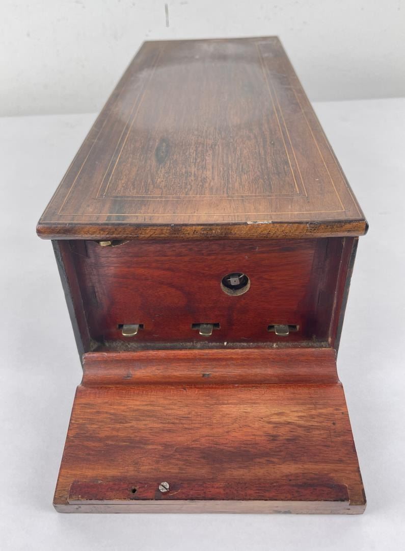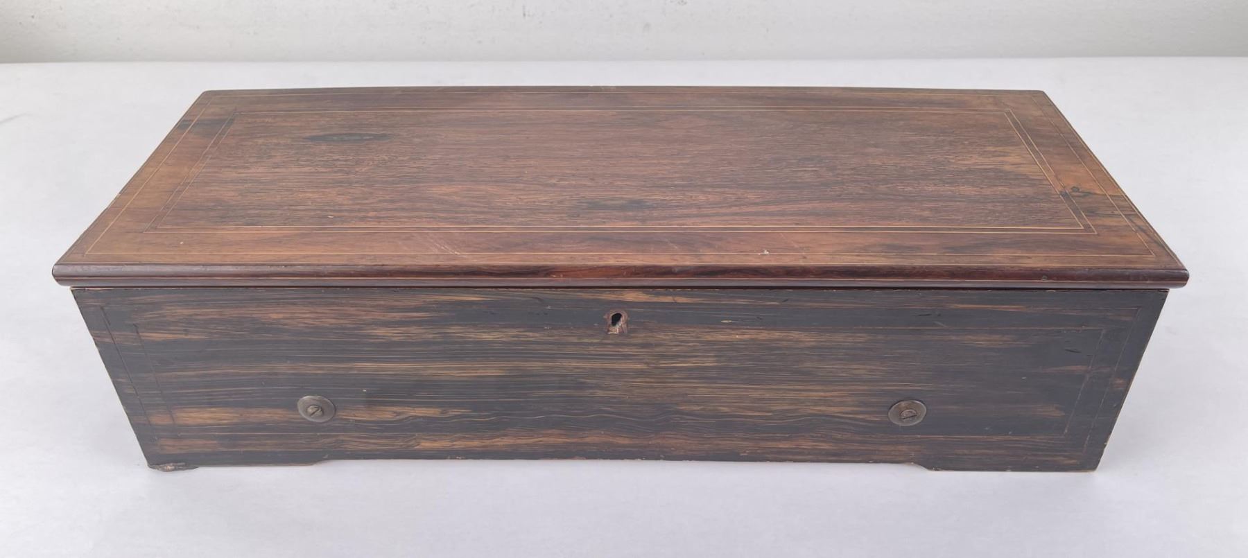 Nice old piece. 19 3/4" long, 7 1/4" wide, 5 1/4" tall. Working order. Sounds wonderful. Comb is not broken or damaged.