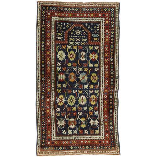 <B>An Antique Daghestan Prayer Rug</B></I><BR><BR>Caucasian, Circa 1870<BR>Wool, silk<BR>64.5 inches x 38.2 inches<BR><BR>Beautiful blue background with multi-colored flower design. <B>Condition Report:</B> Normal signs of wear as appropriate with age with repairs to both ends.<BR><BR><b>Shipping:</b> Requires 3rd Party Shipping (<a target="_blank" href="http://www.heritageauctions.com/common/shipping.php">view shipping information</a>) <BR><BR><B>Important notice: