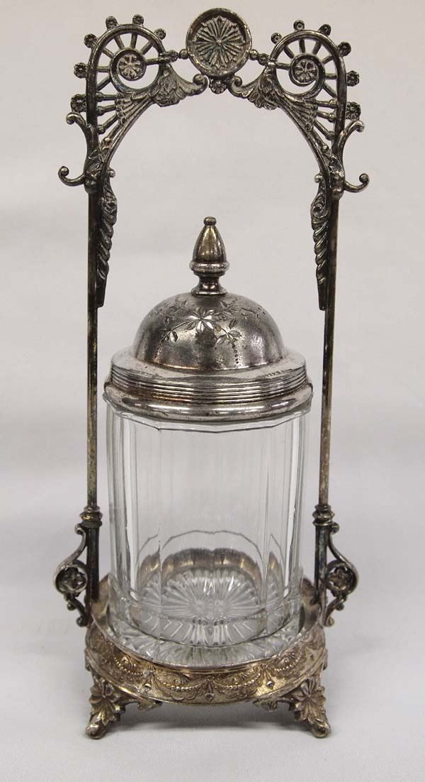Antique Derby Company Silverplated Pickle Castor, measures 5'' x 11'', the top needs to be soldered, does not have tongs or fork, hallmarked and tripleplated