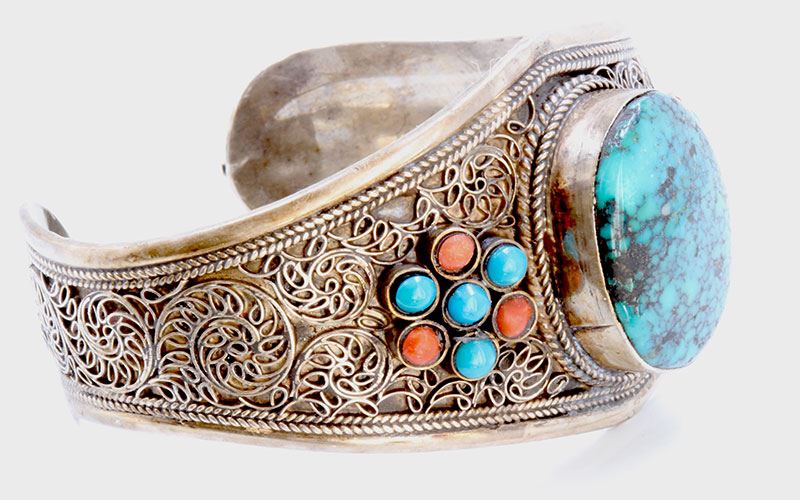 Antique Design Sterling Silver .925 Turquoise Bangle 59.08g