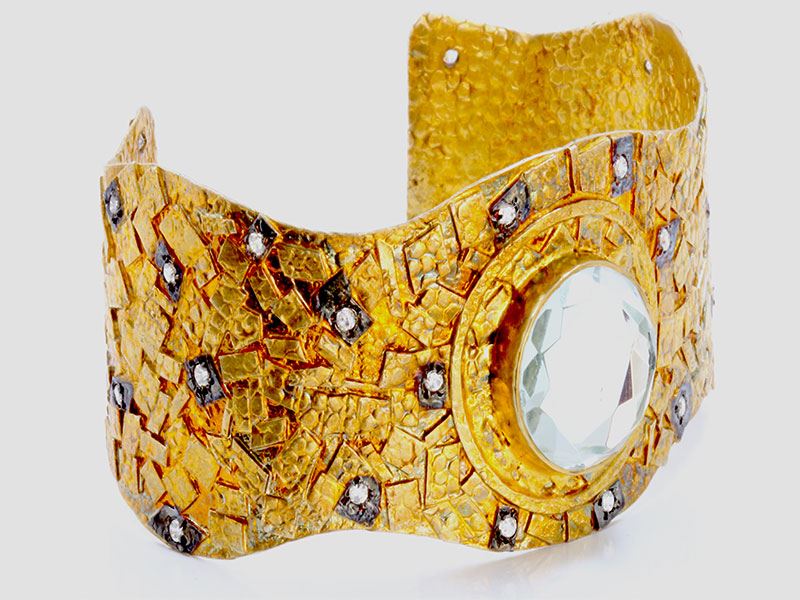 Antique Design Sterling Silver .925 over Gold Plated Quartz & CZ 53.65g