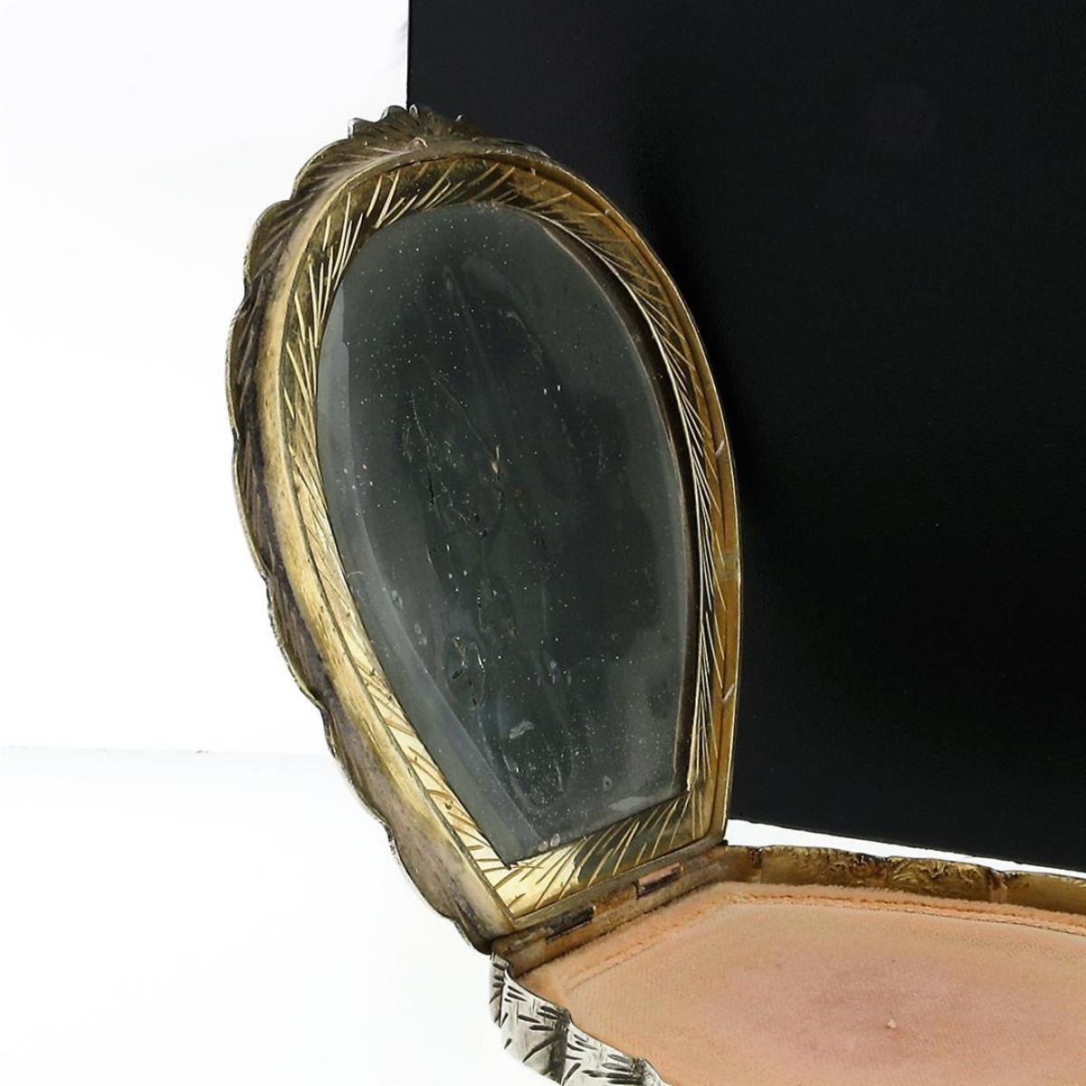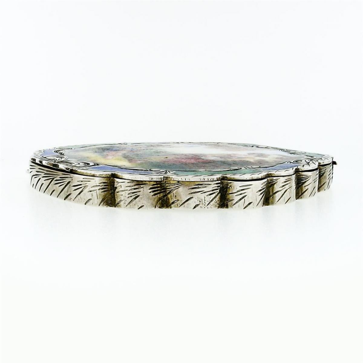 Antique Detailed Enamel Painting Engraved Silver Makeup Powder Shell Shape Box