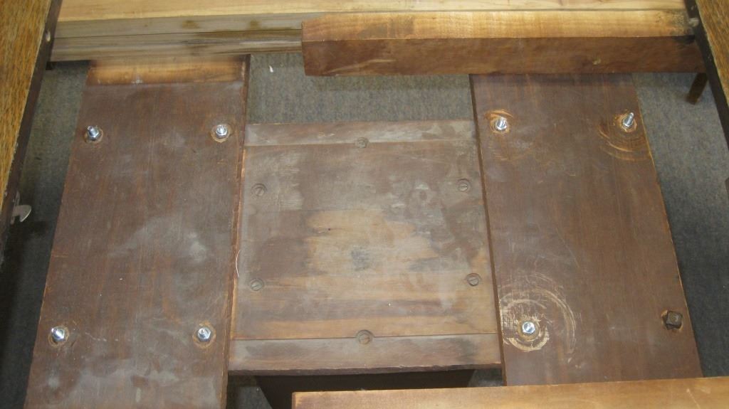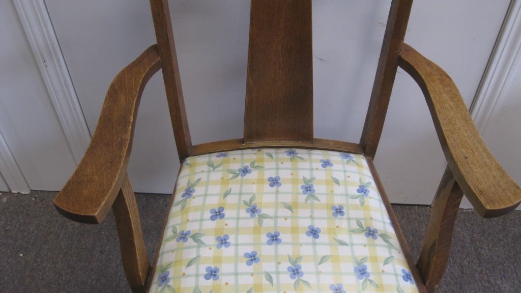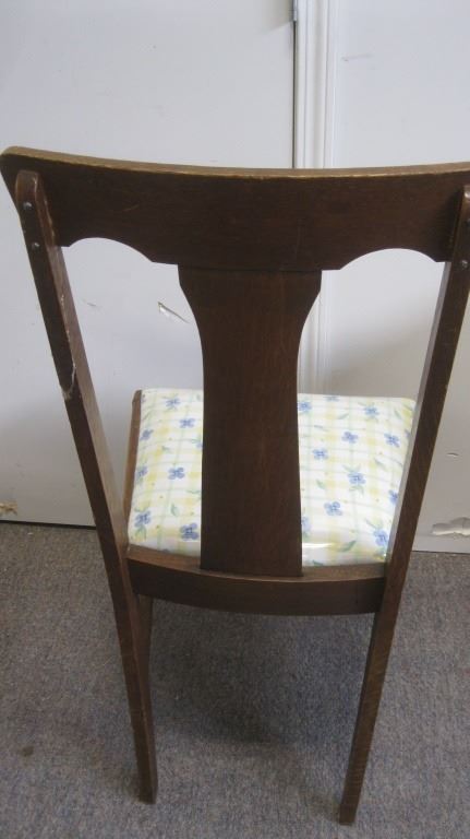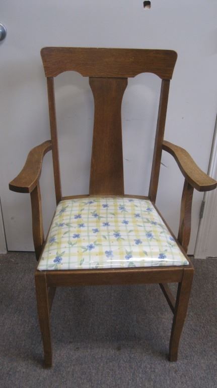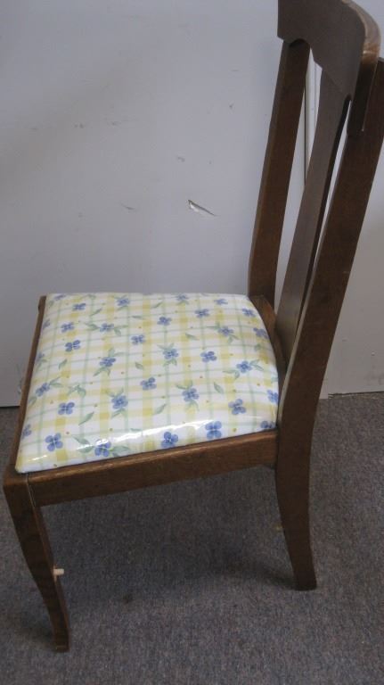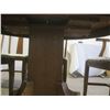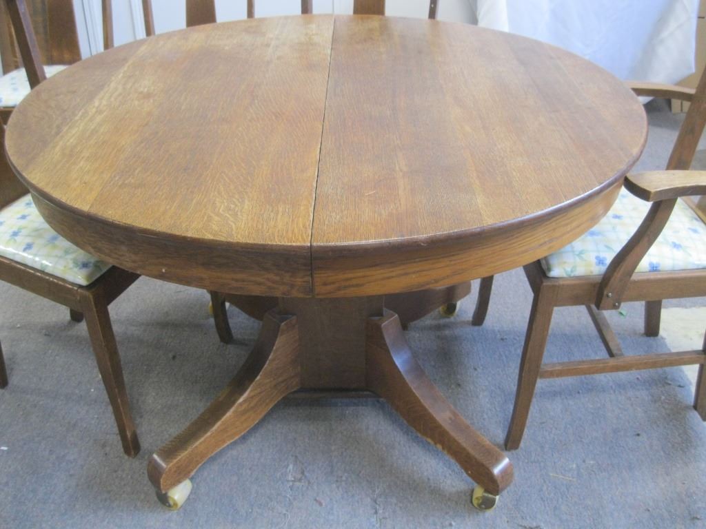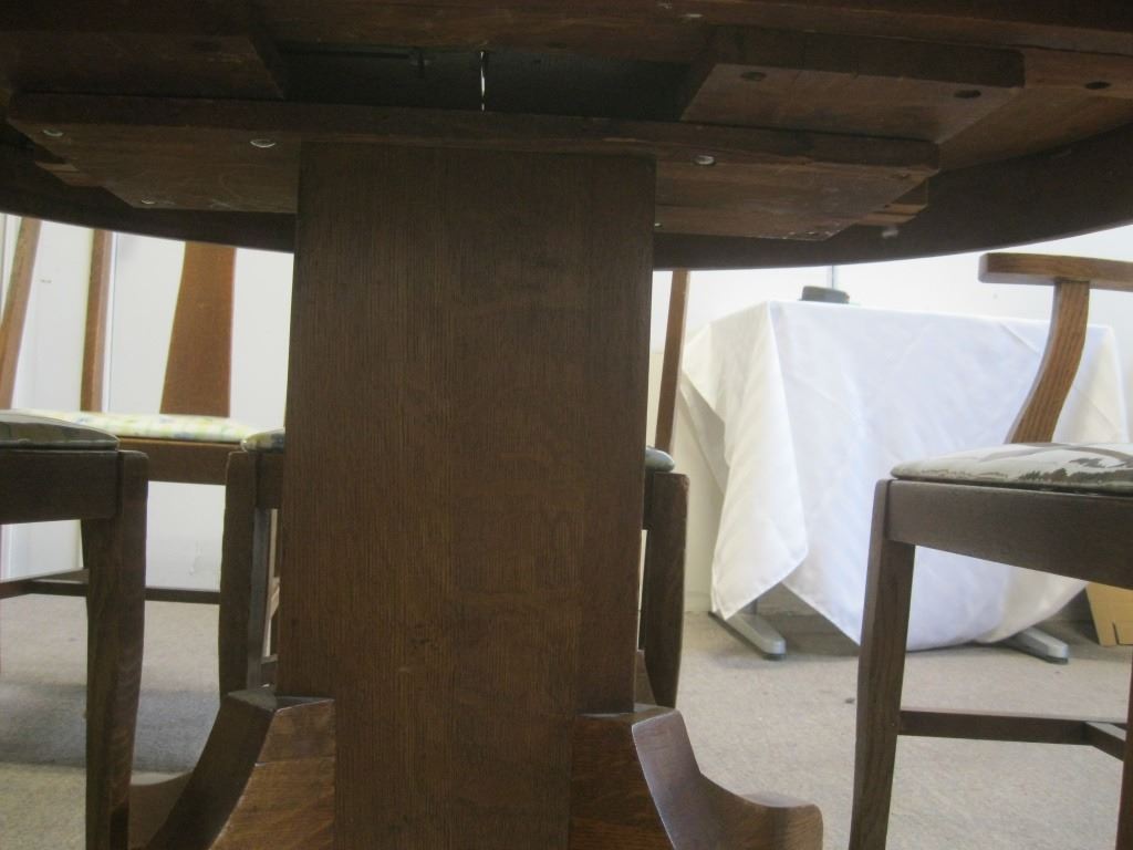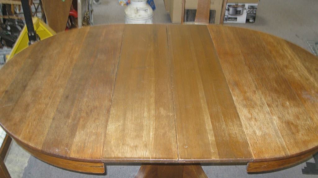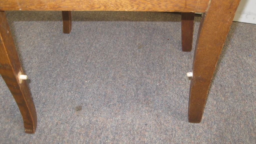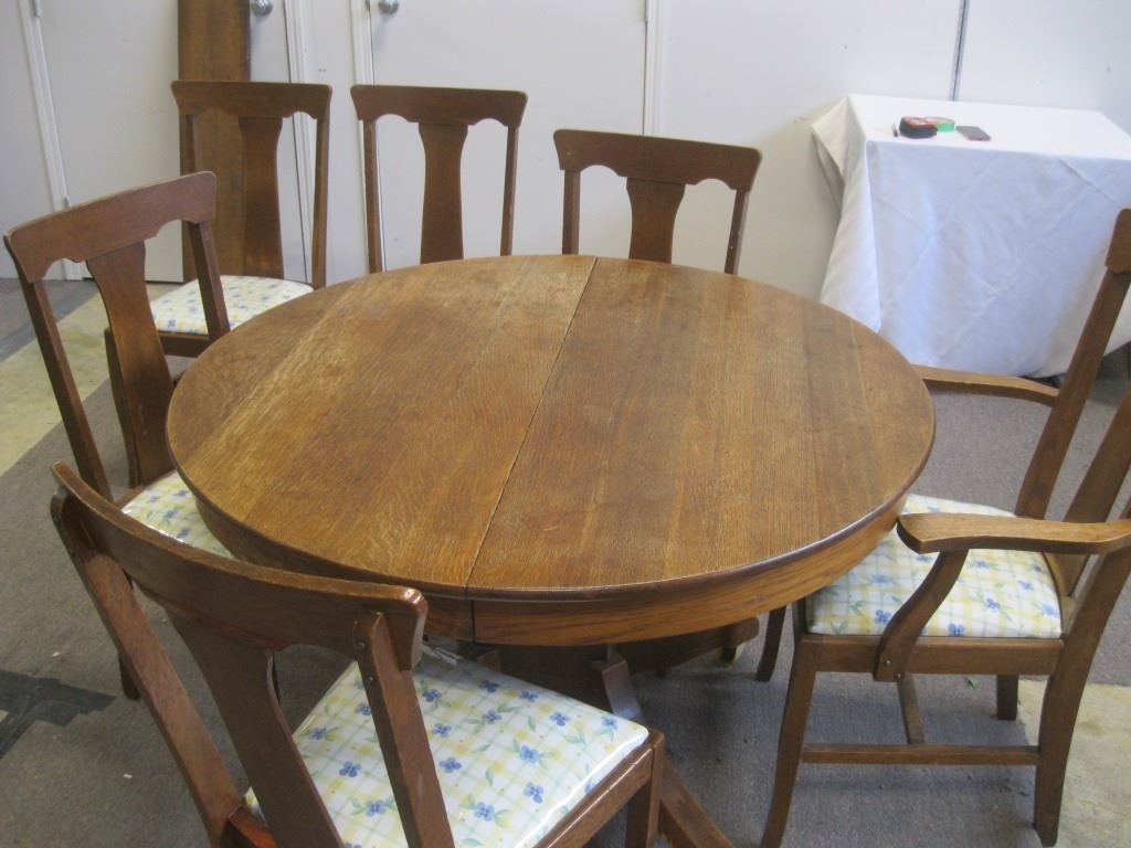 c/w 2 Leaves, 1 Captain Chair and 5 Chairs 64 x 45 x 30 Leaves ae 10'' x 45'' All Chairs have been upholstered. One of the Chair has a minor damage see