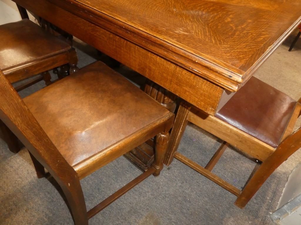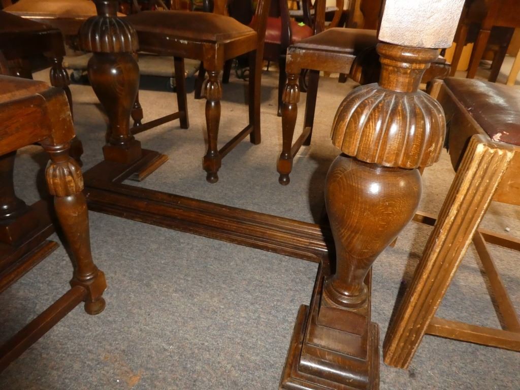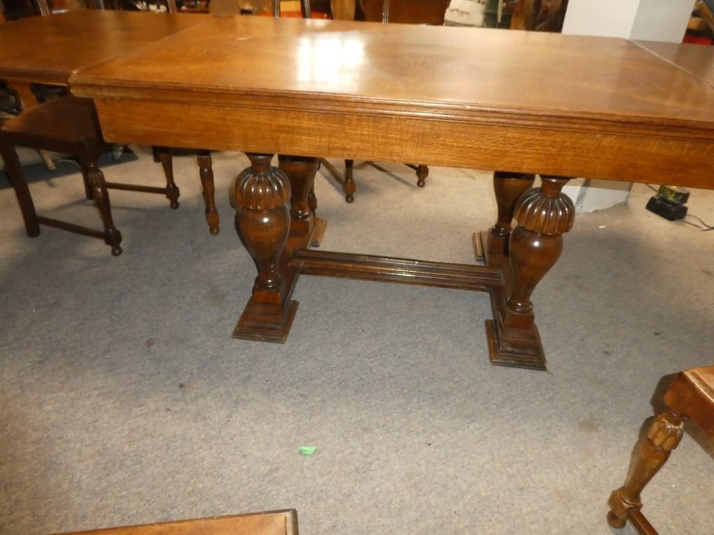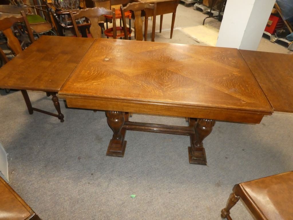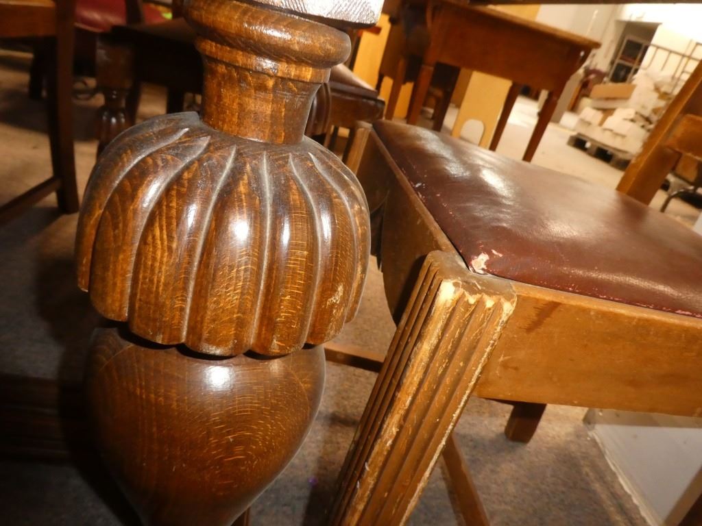 Table has Leaves under the Table Top Chairs Mfg. By Kuehne Manufacturing Co. Flora, Illinois 37.5 X 55/98.5 X H30.5''