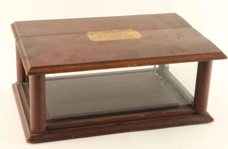 Antique Display and Sale Case of The Boston Garter, George Frost Company. Velvet grip with a rubber button clasp to hold mens socks up. Wood case with glass sides. Measures 14 1/8" x 6" x 9 1/2". Shows age, lid shows repair.