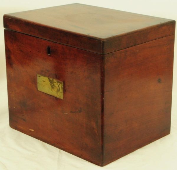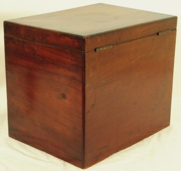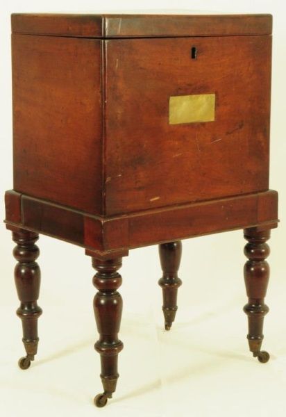 On stand. Chest measures 15" tall, 17" wide, 12 1/2" deep. Stand measures 15" tall.