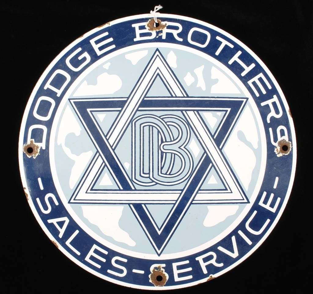Porcelain Advertising Sign. Measures 11 3/4" in diameter. The front reads "Dodge Brothers DB Sales-Service". Has smooth porcelain on both sides. Offered "as is", we don't guarantee the authenticity of this item, please do your research. All sales are final.