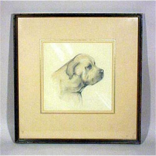 Here is a rather nice vintage pencil drawing dog portrait. The work is exceptional with tinges of pastel or chalk highlighting on the subject. This little guy has a wonderfully pensive face. Whoever drew this fabulous sketch was well informed with animal anatomy or just had a great eye. This sketch is housed in a very nice simple fruit wood frame with what appears to be a very expensive mat. The mat has an interior border of gold gilt embossing and it is in perfect condition. The sight size is 9? x 9? and overall in the frame it is 17? x 16 ½?. The sketch is unsigned and is vintage dating from the early 1900?s.