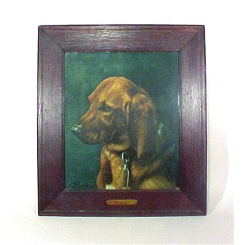 Here is a spectacular framed print entitled Sorcerer. This print is after the famous painting by Alexander Pope and this is so signed on the bottom left. The print is in spectacular condition ? to see it in real life you would not be able to take your eyes off of it! It is housed in a very simple well done oak frame. The frame appears to be original with all the original paper backing on it. It has a brass plaque at the bottom with the word Sorcerer. It is a nice large image and a fabulous décor for any dog lover! Overall it measures 21 ½? x 24 ½? and the sight size is 14 5/8? x 17 ½?.