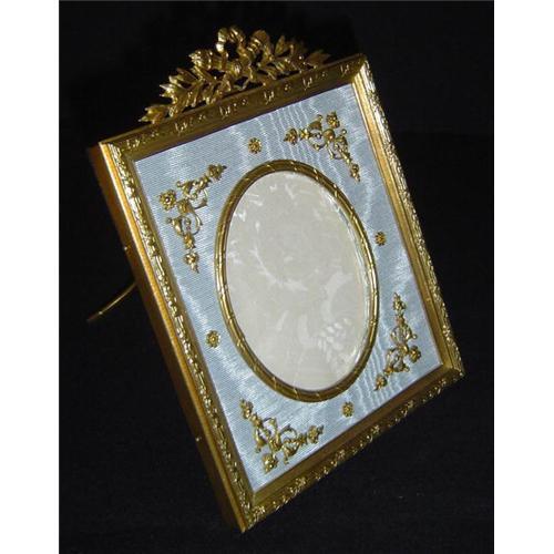 <tr><td>Title:Antique Dore Bronze and Silk Moire Frame</td></tr>