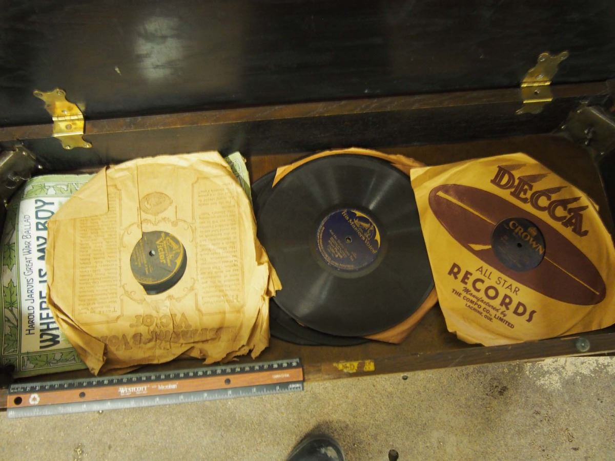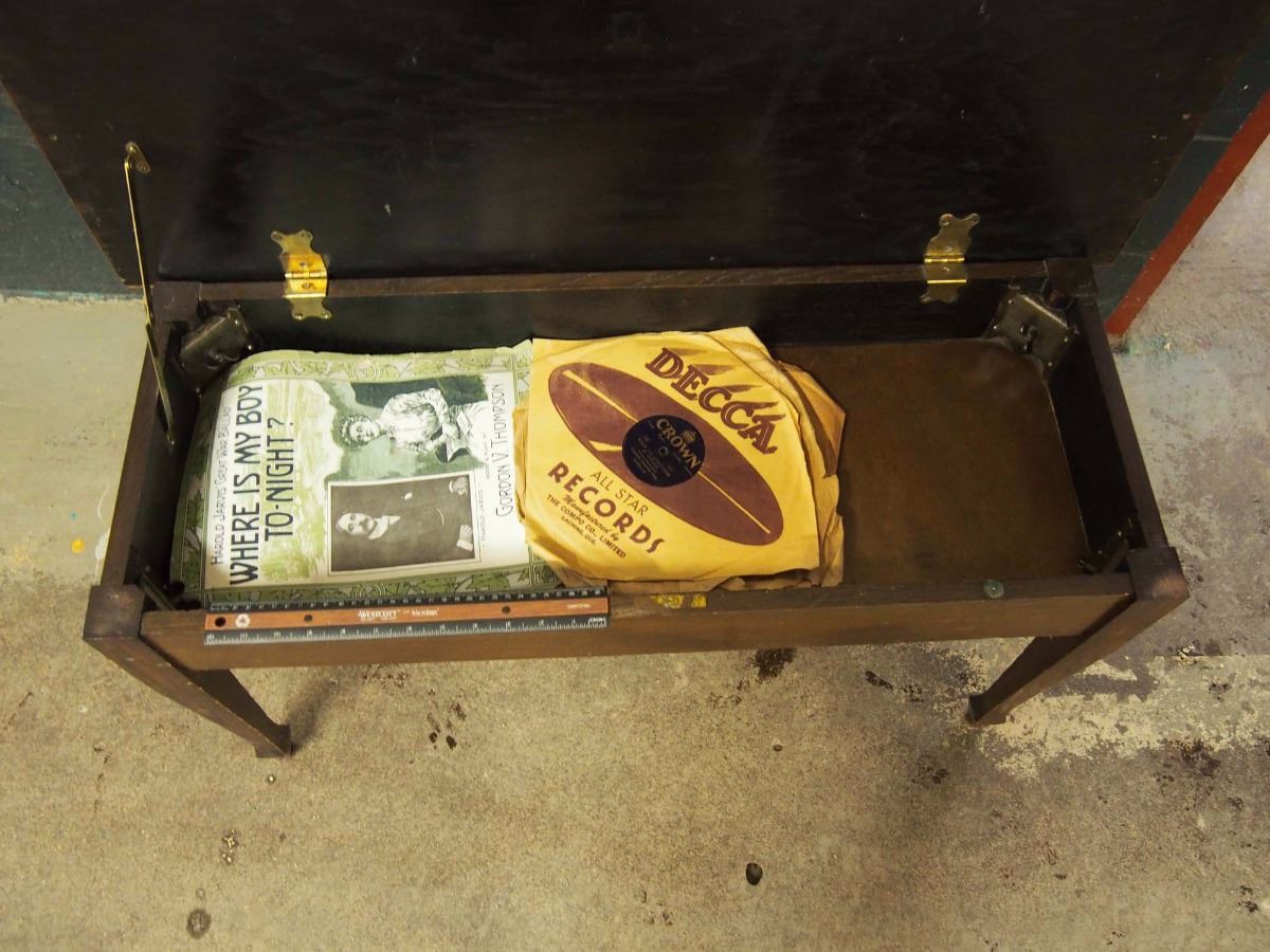 Antique Double Wide Piano Stool, Two Seater, Flip Up Seam, W/ Contents Of Old Record Music From 1920’s/30’s