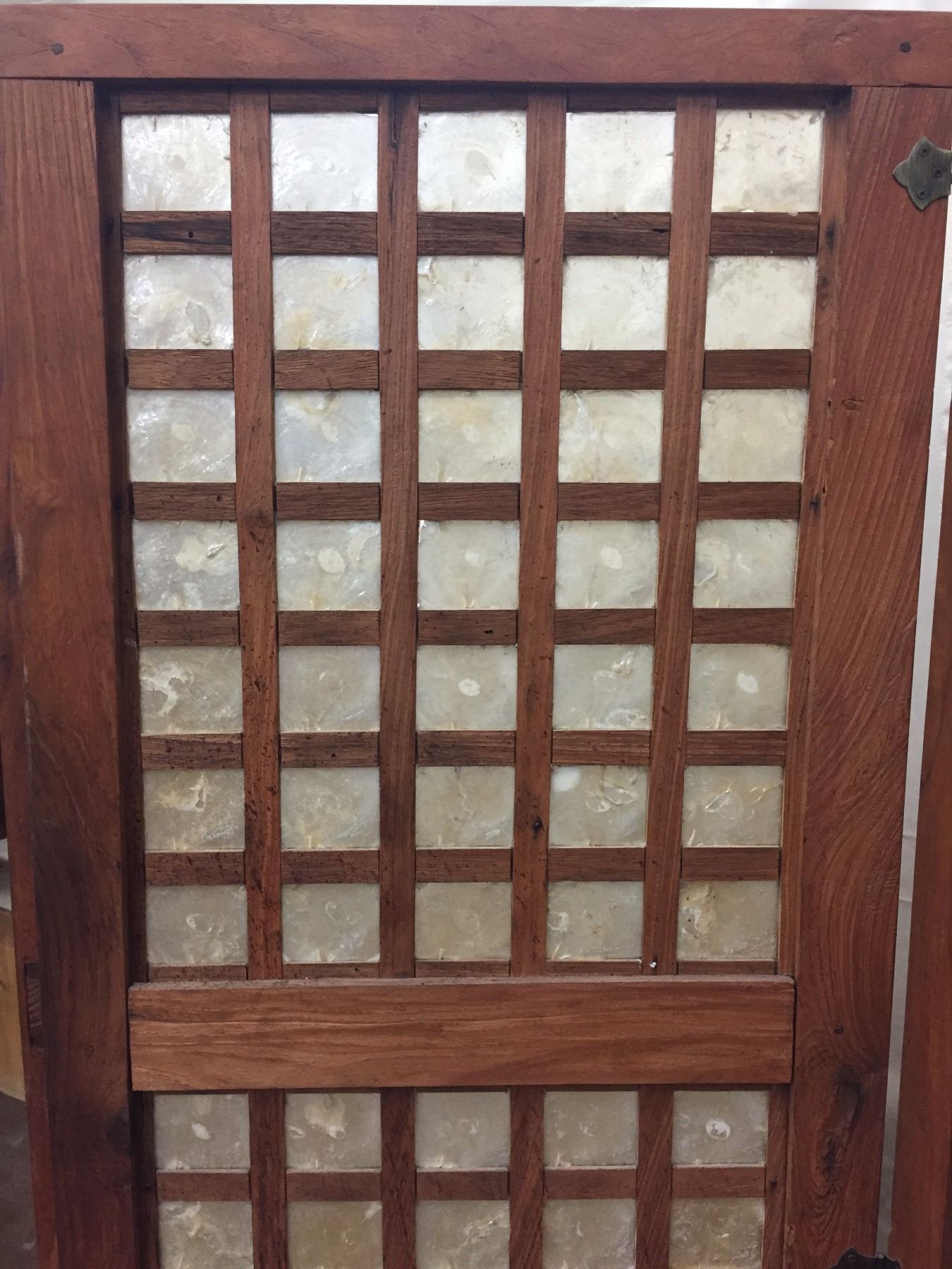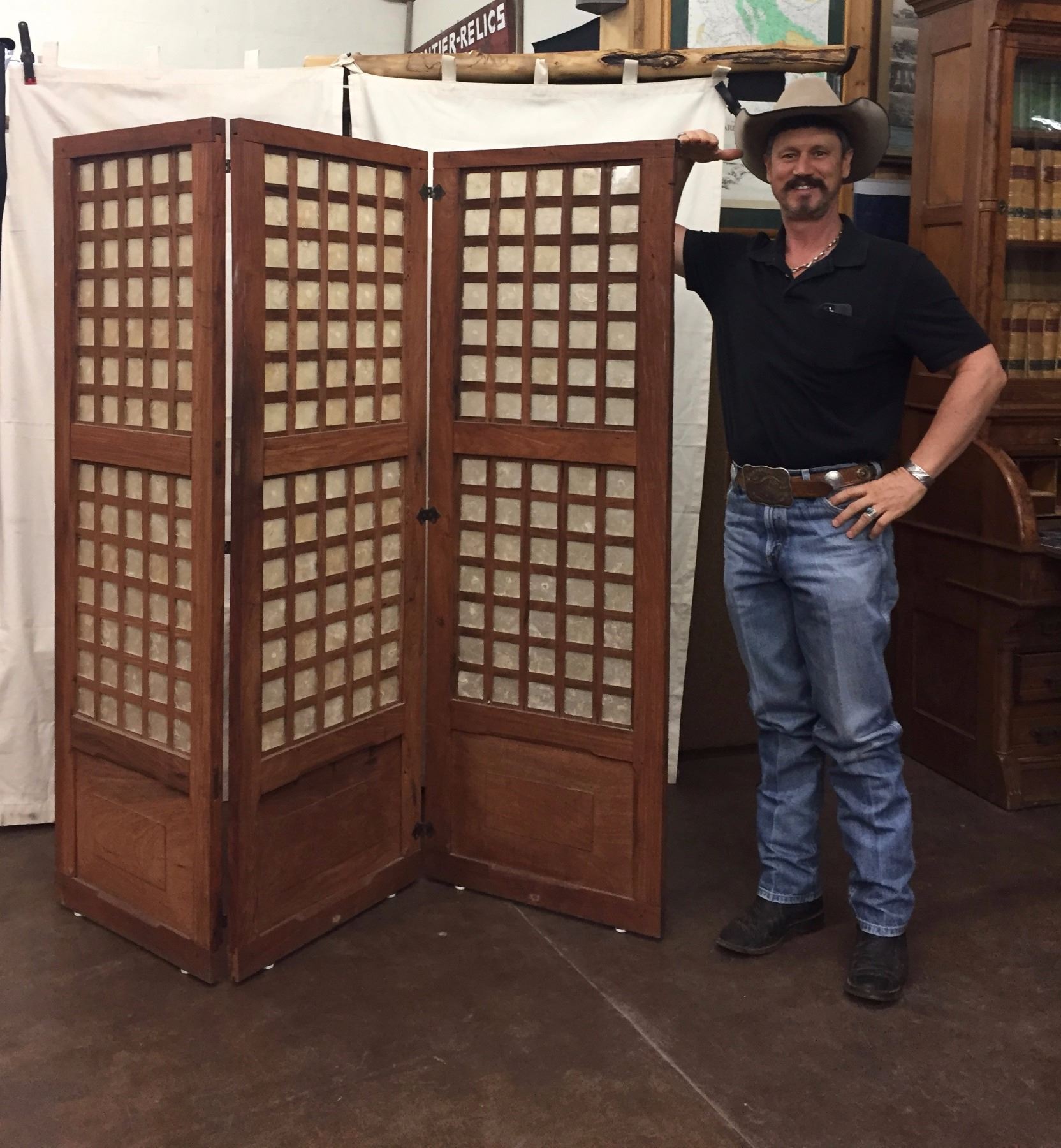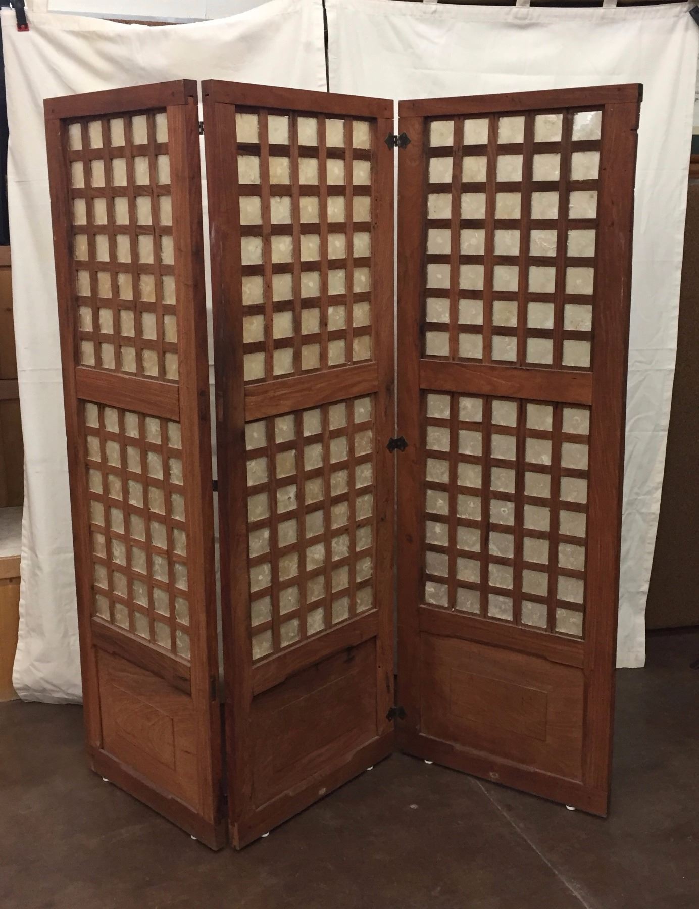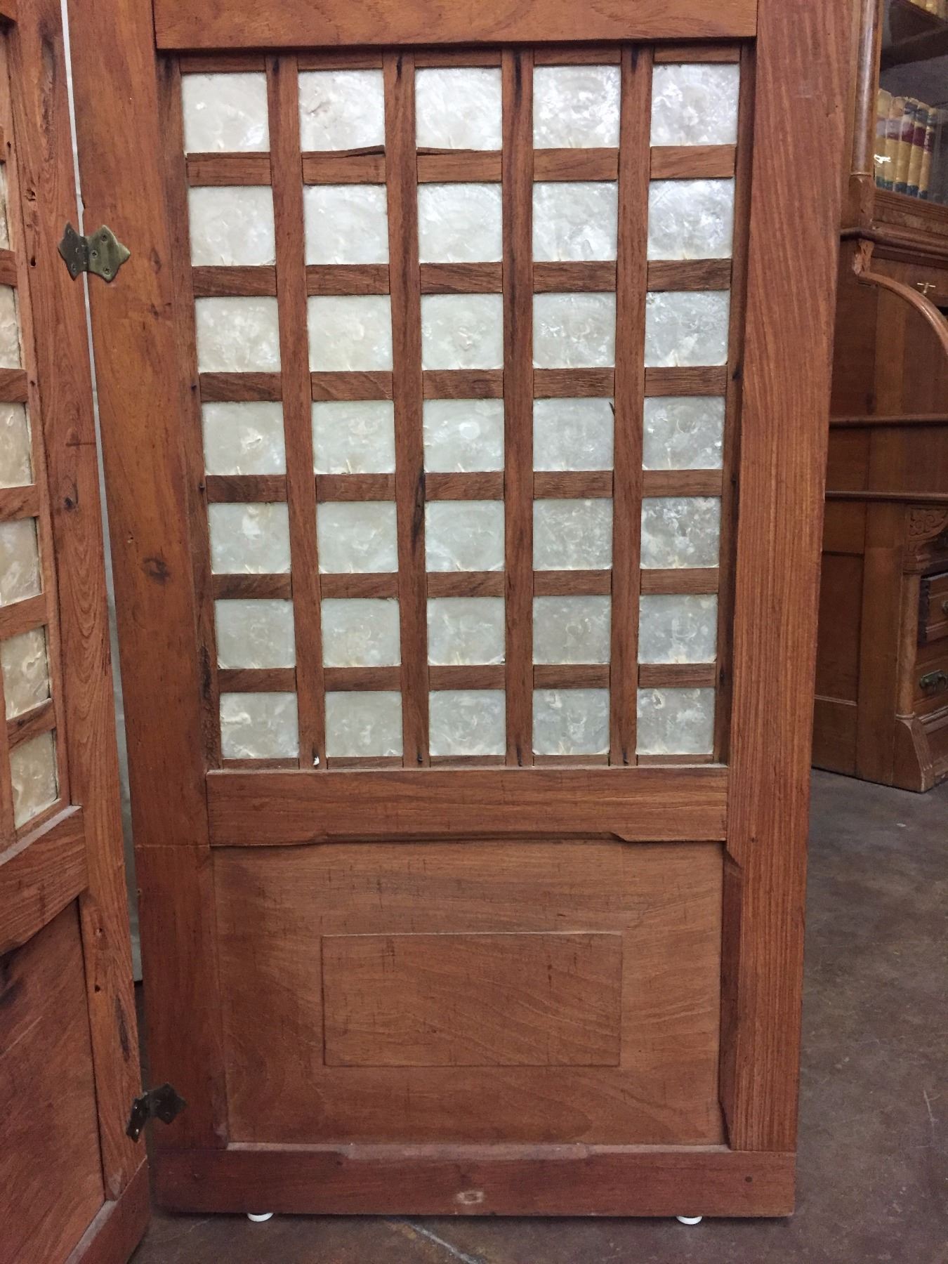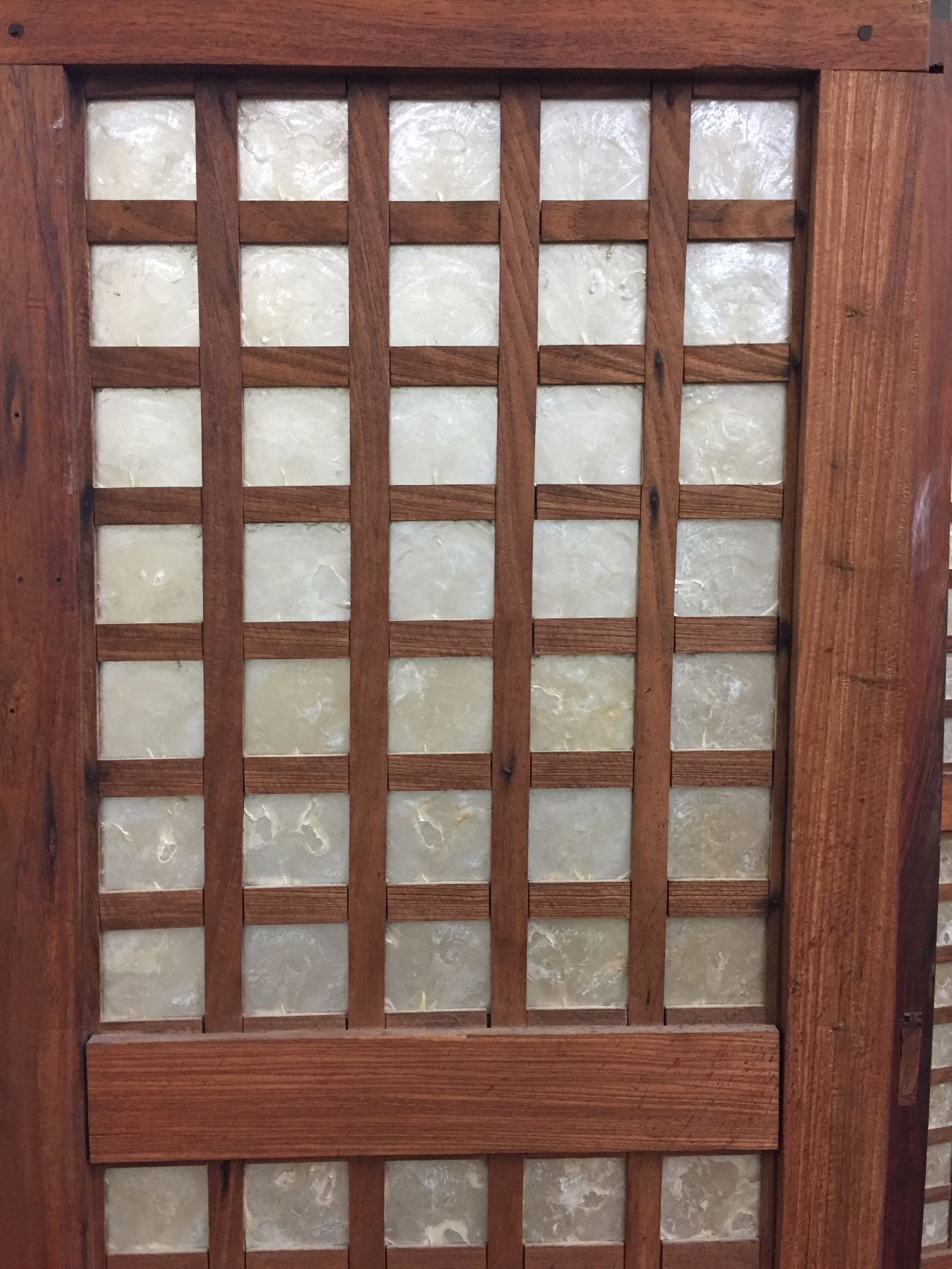 Maker: Unknown. Approx. Age: Circa 1930s - 1940s. Size: Each panel is 23” wide x 67” high. Additional Info: Handcrafted wooden divider with mica insets. Condition: Good for it’s age, some small chips and holes in the mica. Please look closely at the pictures - they are an important part of our description. Shipping: Local pickup only.