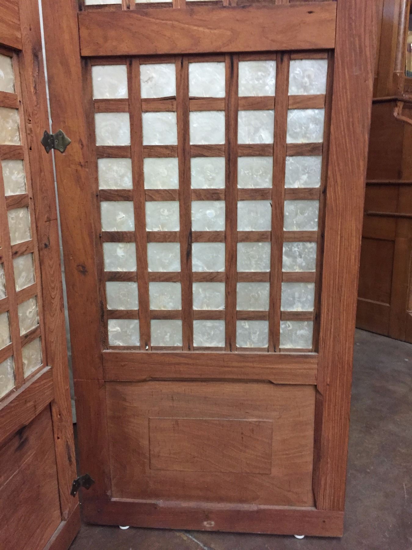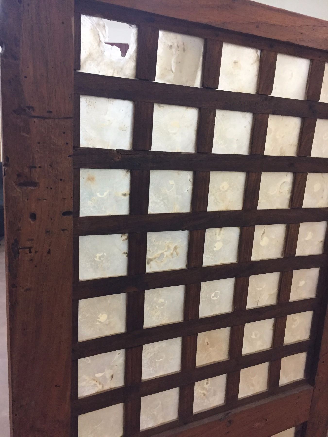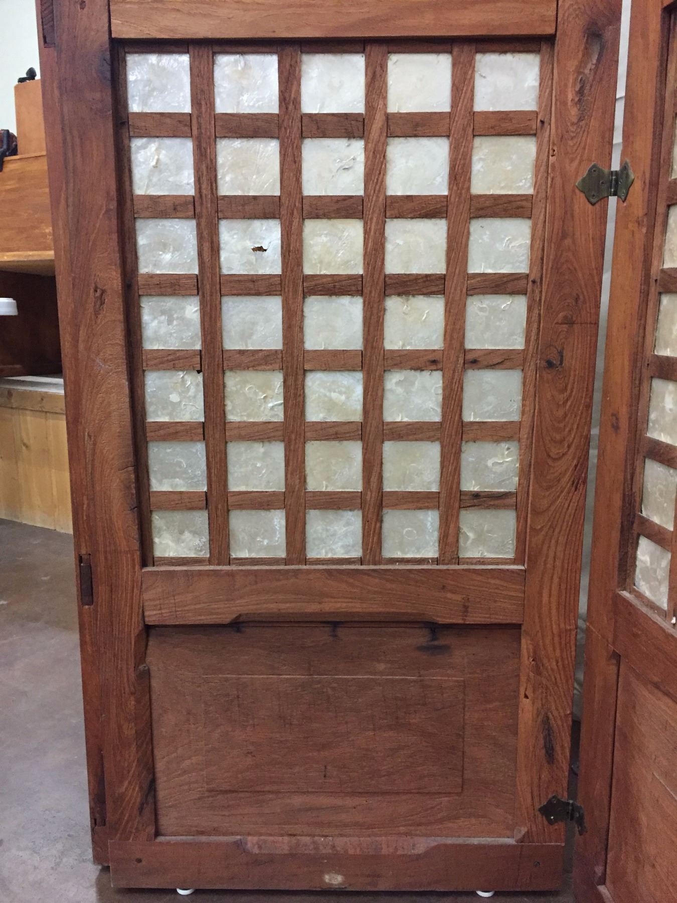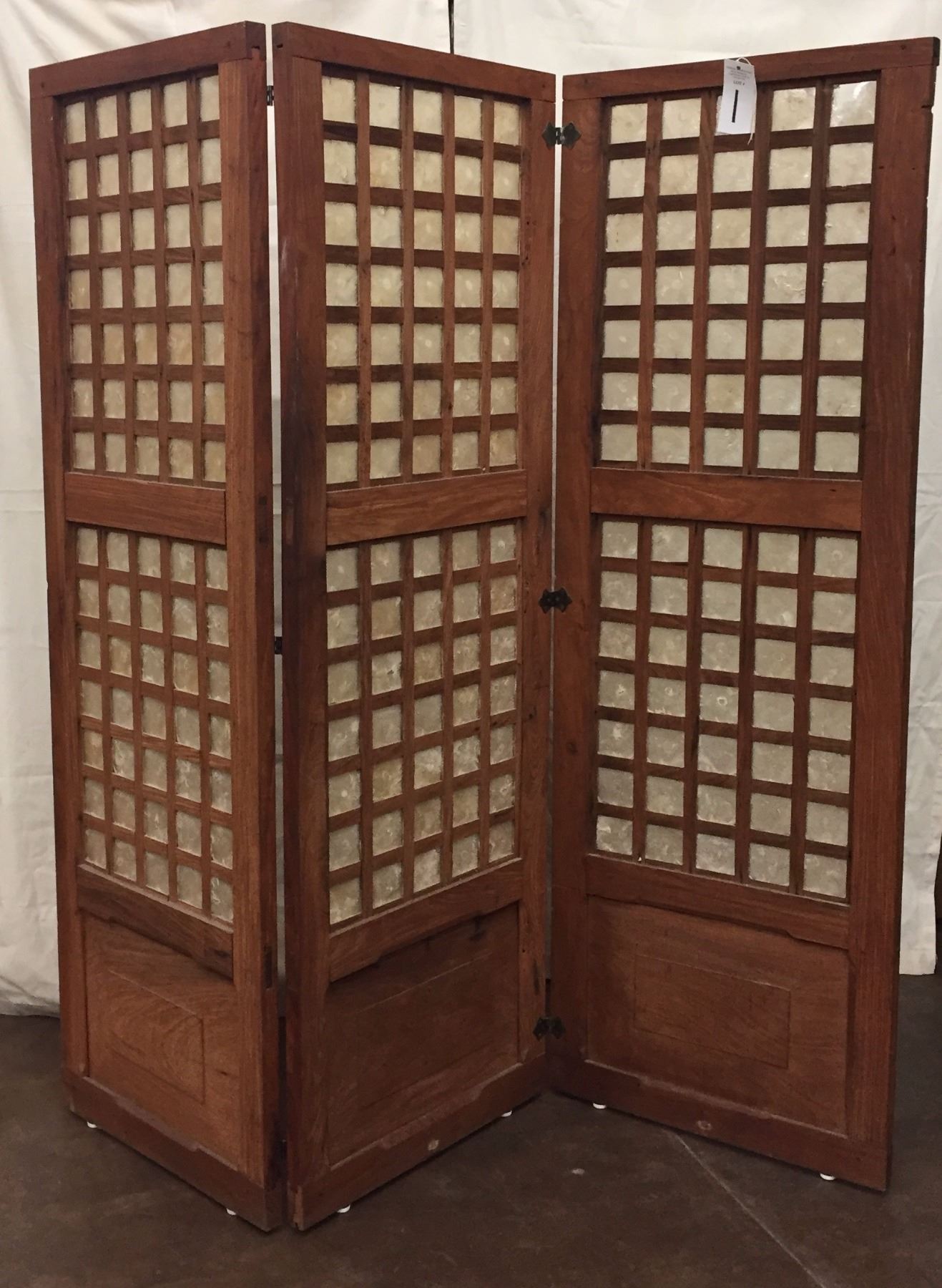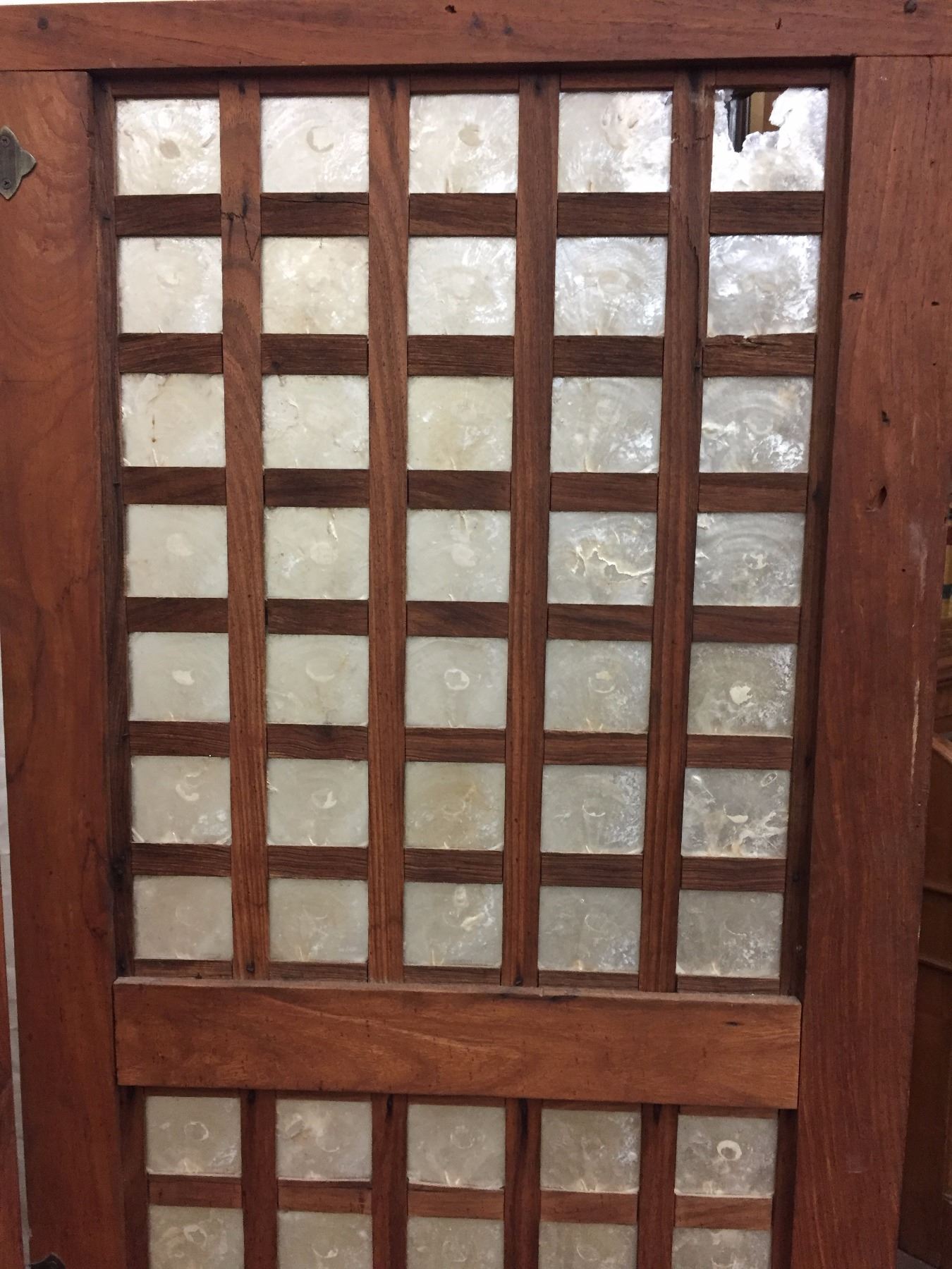 Maker: Unknown. Approx. Age: Circa 1930s - 1940s. Size: Each panel is 23” wide x 67” high. Additional Info: Handcrafted wooden divider with mica insets. Condition: Good for it’s age, some small chips and holes in the mica. Please look closely at the pictures - they are an important part of our description. Shipping: Local pickup only.