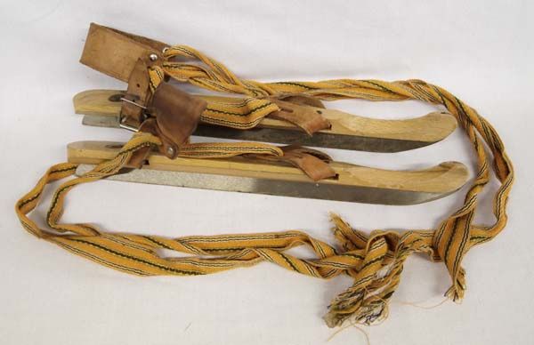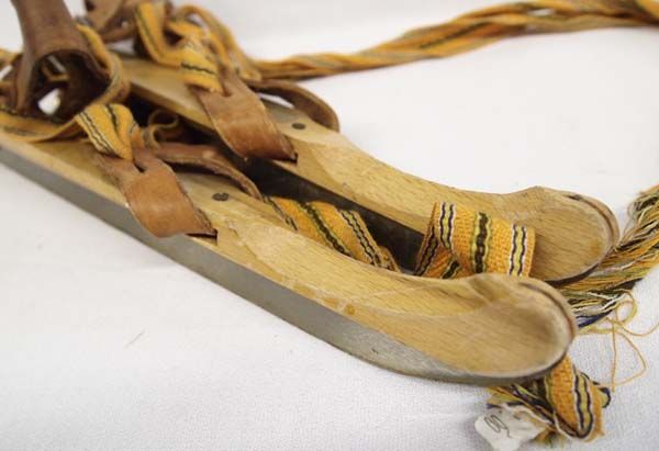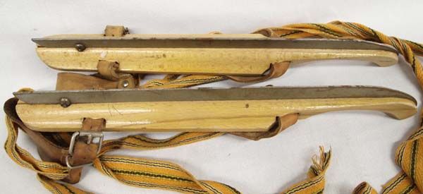 Antique Dutch J. NOOITGEDAGT & ZONEM - IJLST, Wooden Ice Skates with Steel Blades, measures 13.5''L x 1.5''W x 1.5''Deep, marked L (left) 25 and R (right) 25 These antique Dutch wooden ice skates have steel blades and leather straps, sticker is missing on right skate, ''Ijsvogel'' is the Dutch word for the Kingfisher bird, These were made by Dutch company Nooitgedagt. This company made wooden skates during a 100-year period between 1865 and 1965.