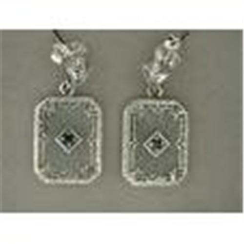 This Antique Style pair of earrings is an Authentic & Accurate copy of a pair from the 1920's - and THIS pair is in Mint condition! These VERY beautiful Earrings are Solid Sterling Silver and each features a rectangular carved Camphor Glass with filigree work surrounding a center Sapphire. The earrings measure 3/8" x 5/8", and they have post style backs.