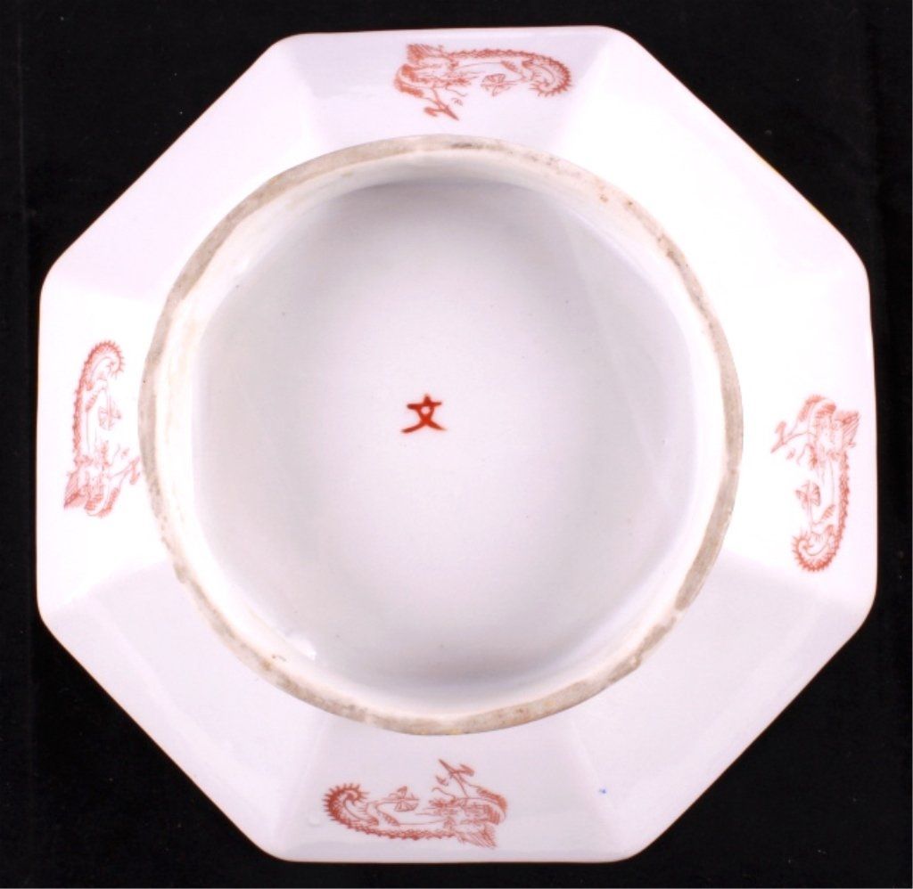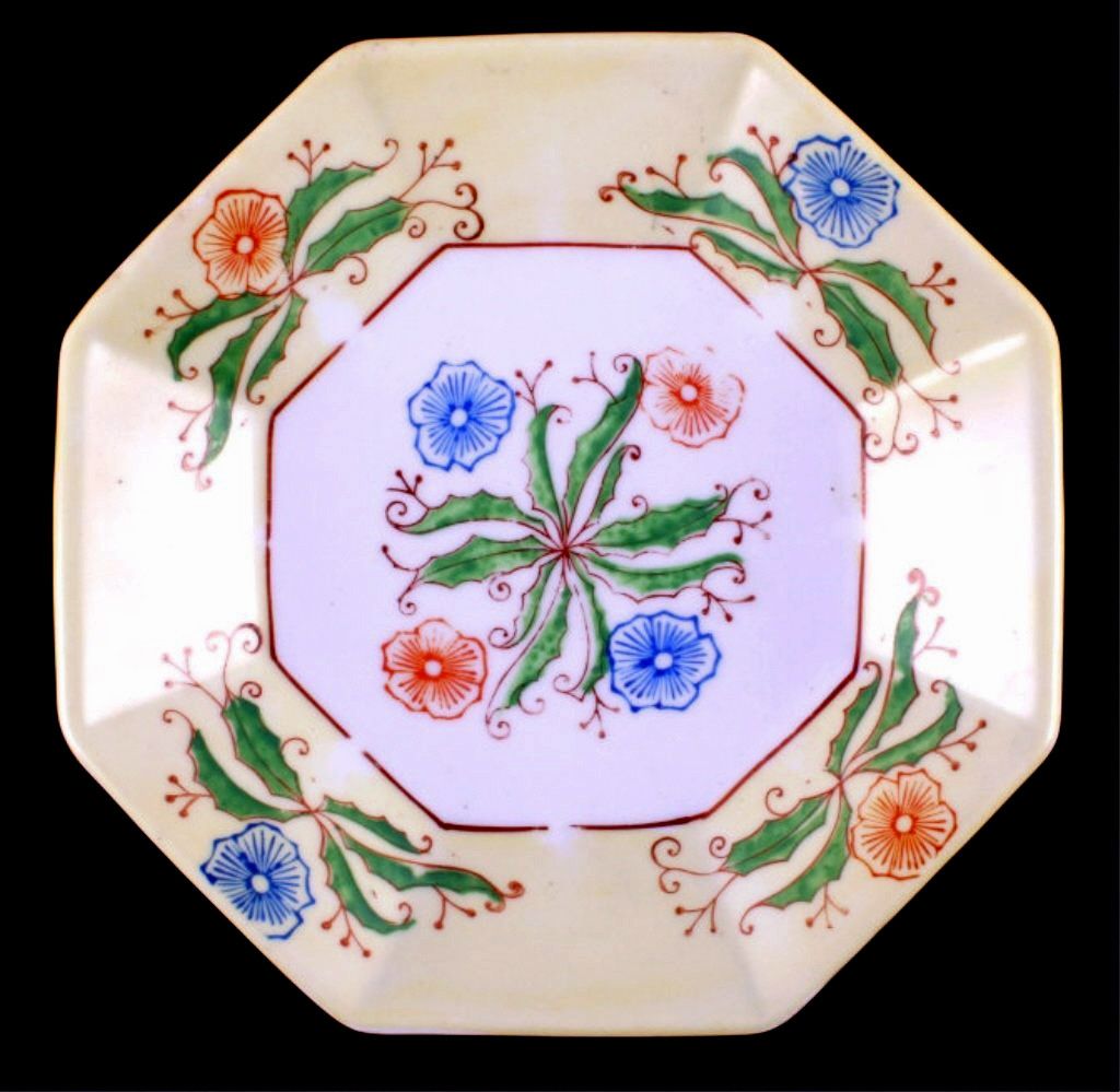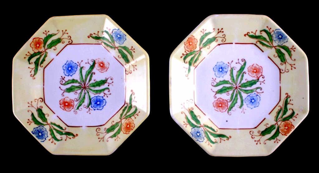 This lot includes a pair of antique Chinese octagonal porcelain plates. These have a unique construction with a heavy porcelain and round high base. Each of the plates shows a floral pattern. They are in very good condition. The bottom shows the chop mark. The plates measure 7.5" x 7.5".