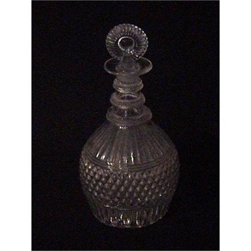 This is a gorgeous early American Sandwich or flint glass decanter. It came out of an amazing collection. The decanter has the matching stopper and a nice pontil mark. It is a fine early 19th century piece of glass. It measures 9.5 with stopper by 5 inches at widest point. It has great patterns and styles to the glass. The stopper is matching and also a blown and then pontiled piece. This is exceptional. <p>Shipping and insurance are determined after checkout. <p>