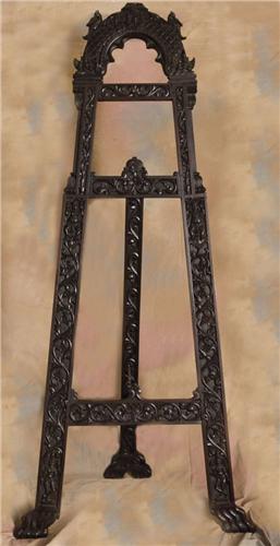 Antique Highly Carved Easel. 35" wide and 78" tall. 19th century. Fine condition. (est $900-1,200).